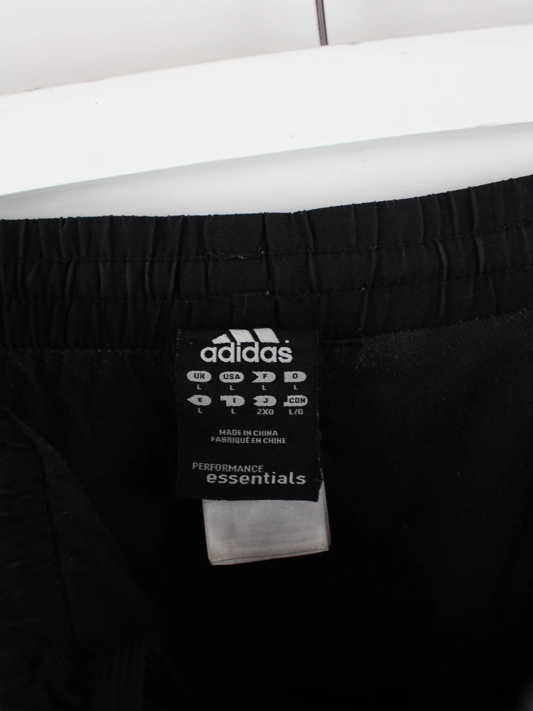 Schwarze Track Pants der Brand Adidas in Größe L. Sie sind aus Synthetik produziert und in sehr gutem Zustand zu bekommen.