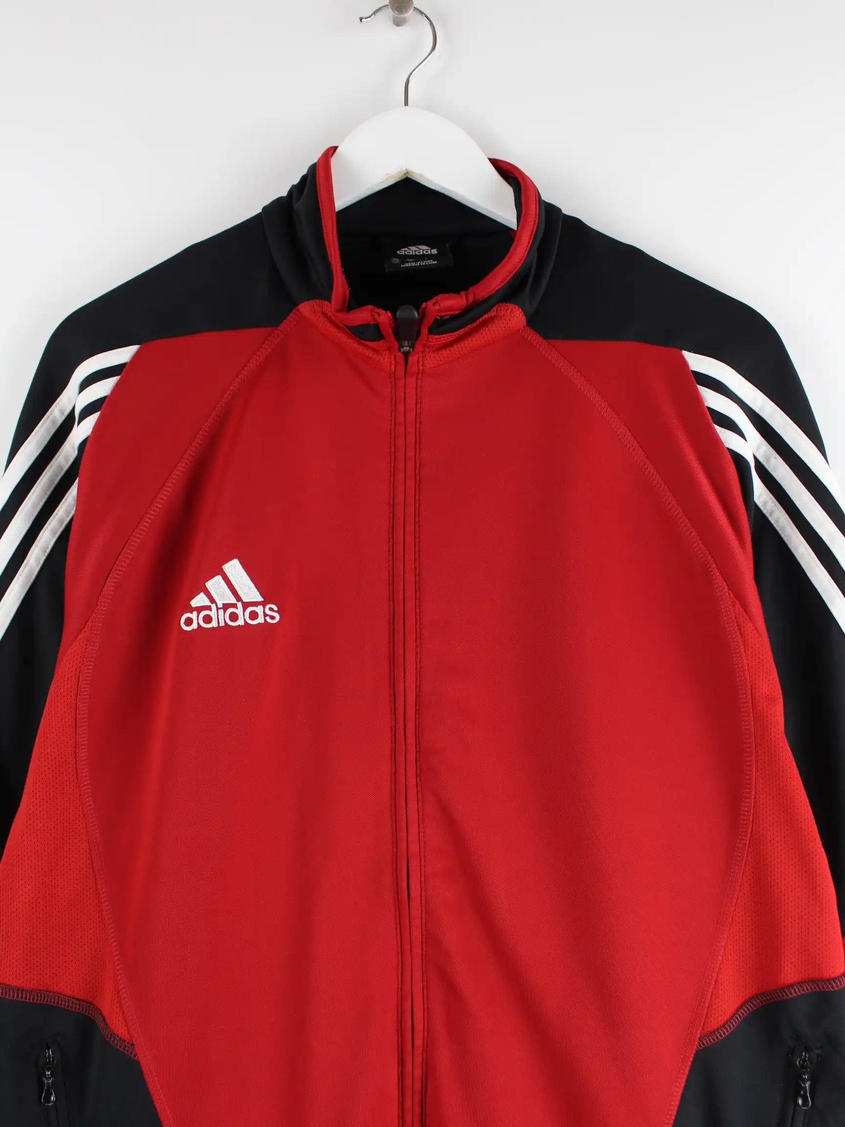Rote Trainingsjacke der Marke Adidas in Größe XL. Sie ist aus Synthetik hergestellt. Den Zustand würden wir als 'In Ordnung' bezeichnen (vergl. Bilder).