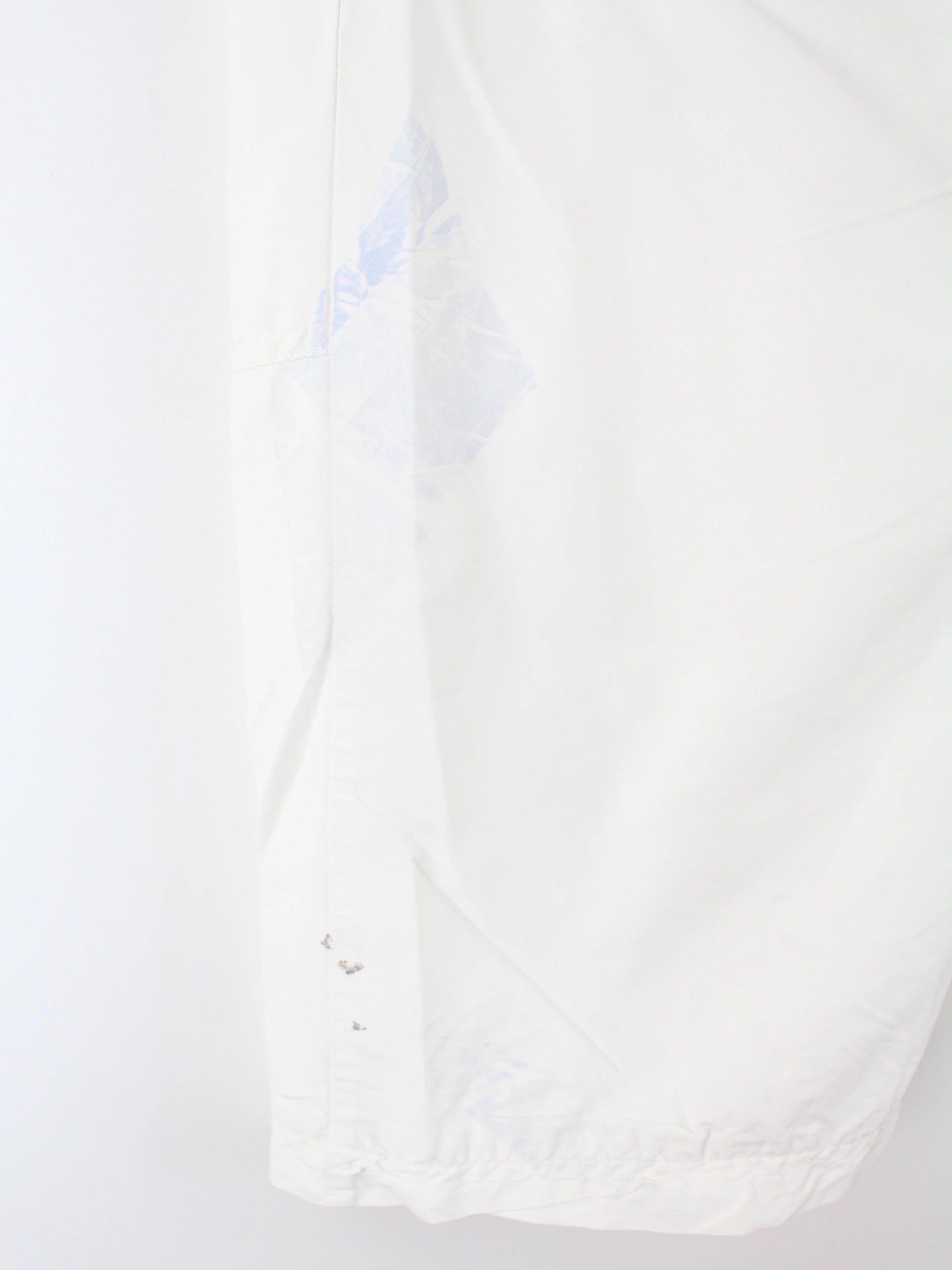 Weiße Track Pants von Adidas aus den 90'ern in Größe XL. Sie sind aus Synthetik hergestellt. Den Zustand würden wir als 'In Ordnung' bezeichnen (vergl. Bilder).