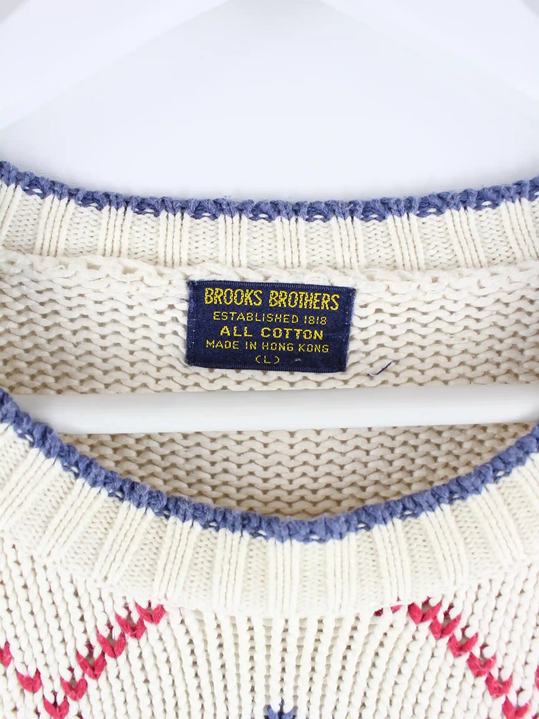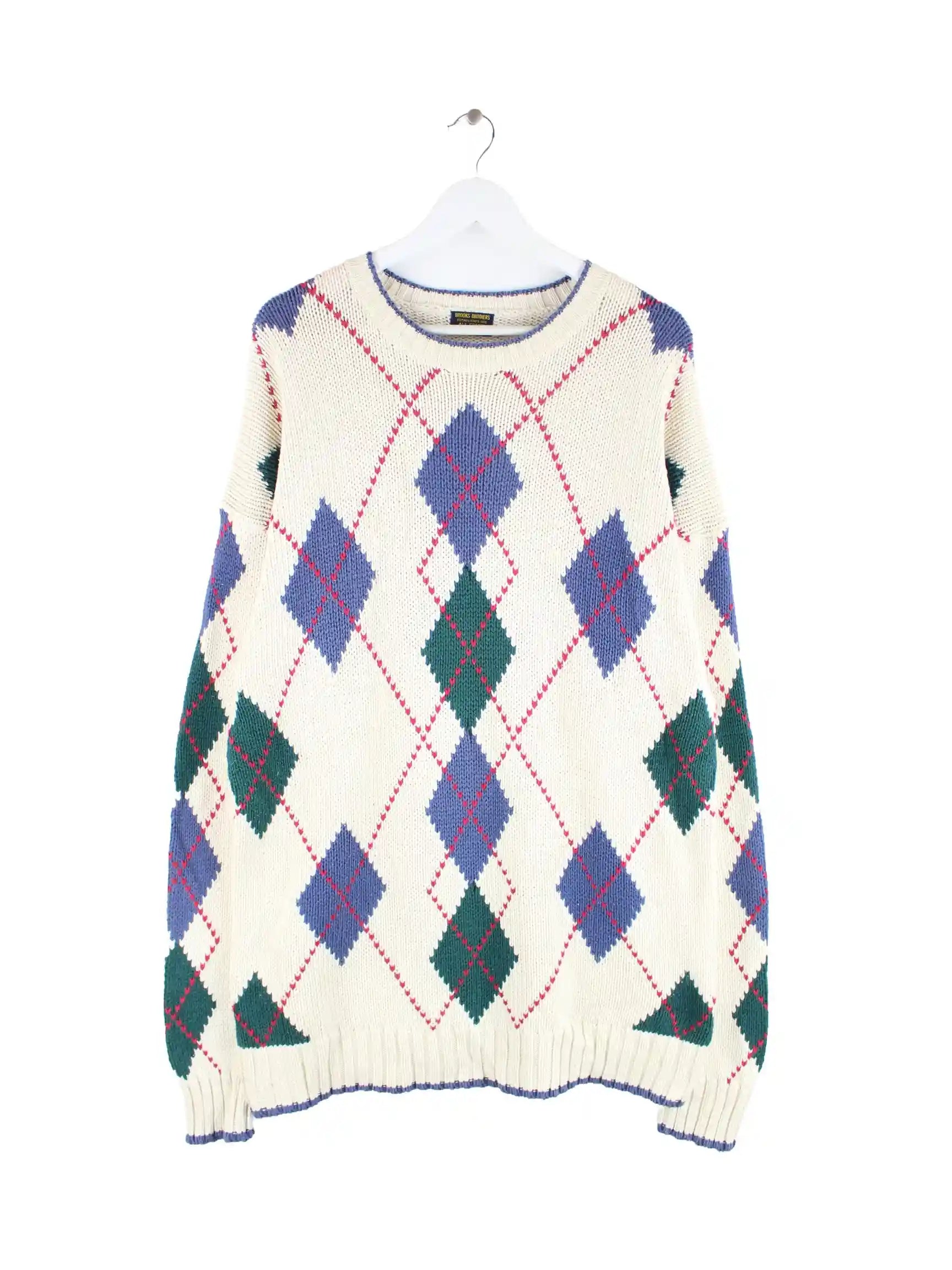 Pullover vom Label Brooks Brothers in Größe 3XL aus den 90'ern. Er ist aus Baumwolle und in Beige bei uns zu bekommen.