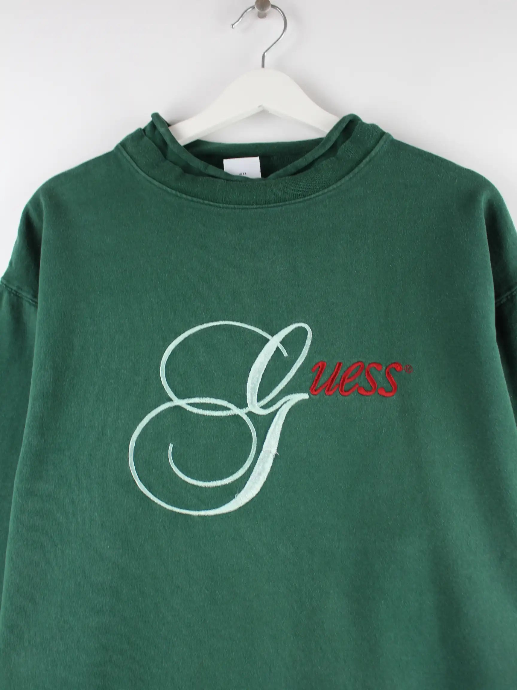 Sweater vom Label Guess in Größe M aus den 90'ern. Er ist aus einer Baumwollmischung und in Grün in Stock.