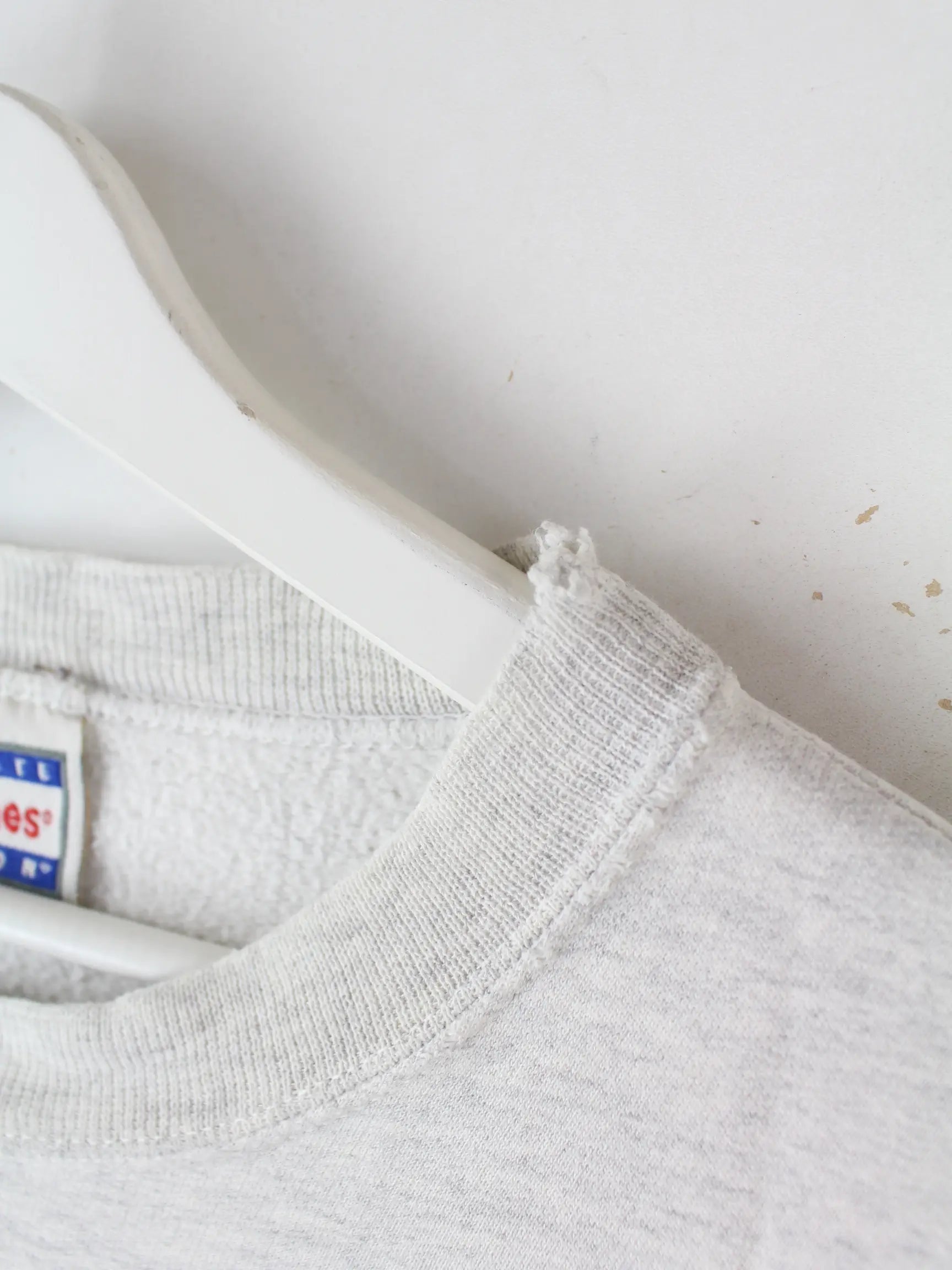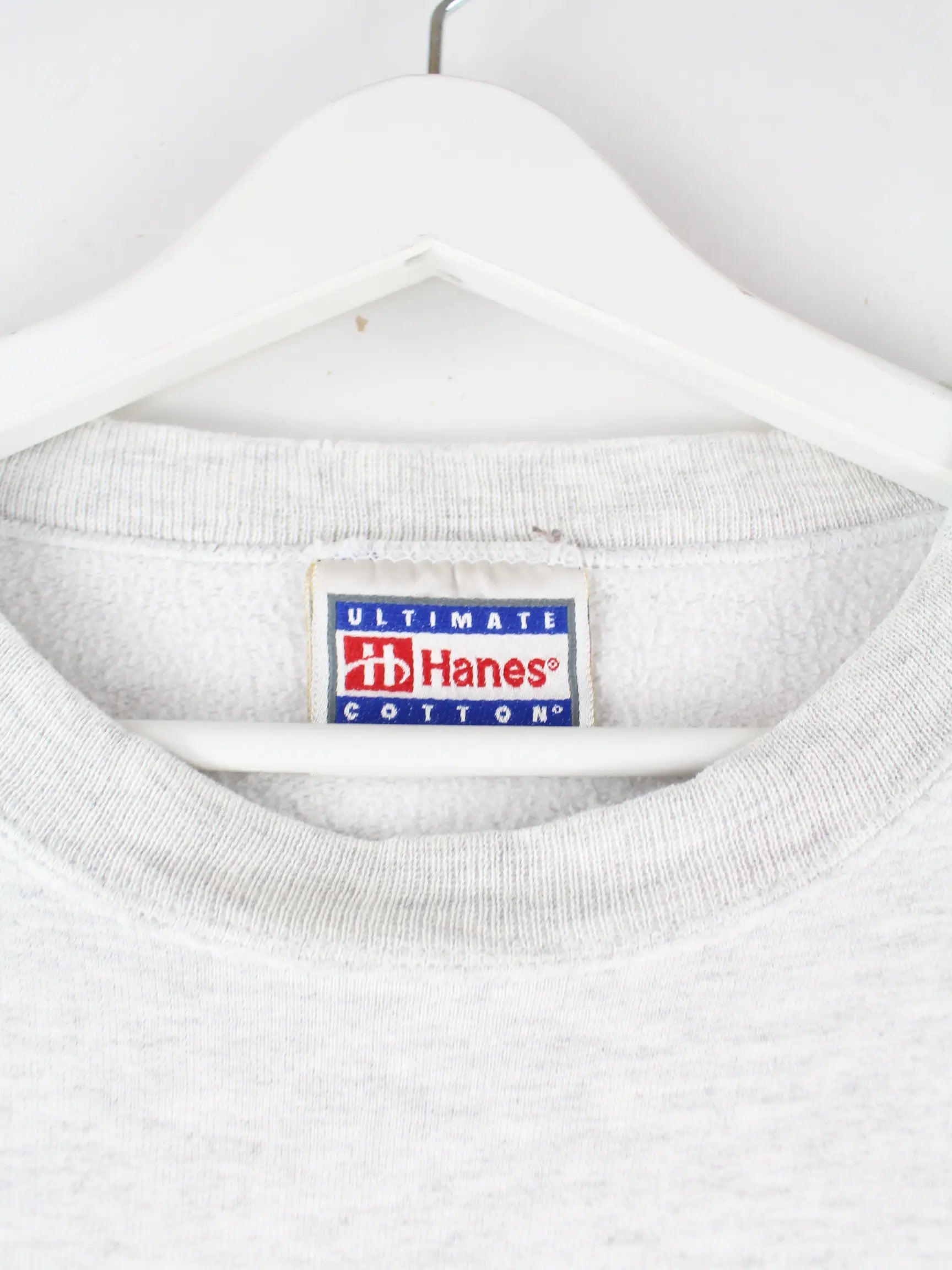 Sweater aus dem Hause Hanes in Größe XXL aus den 90'ern. Er ist aus einer Baumwollmischung angefertigt und in Grau vorrätig. Mit tollem Grafitti Print.