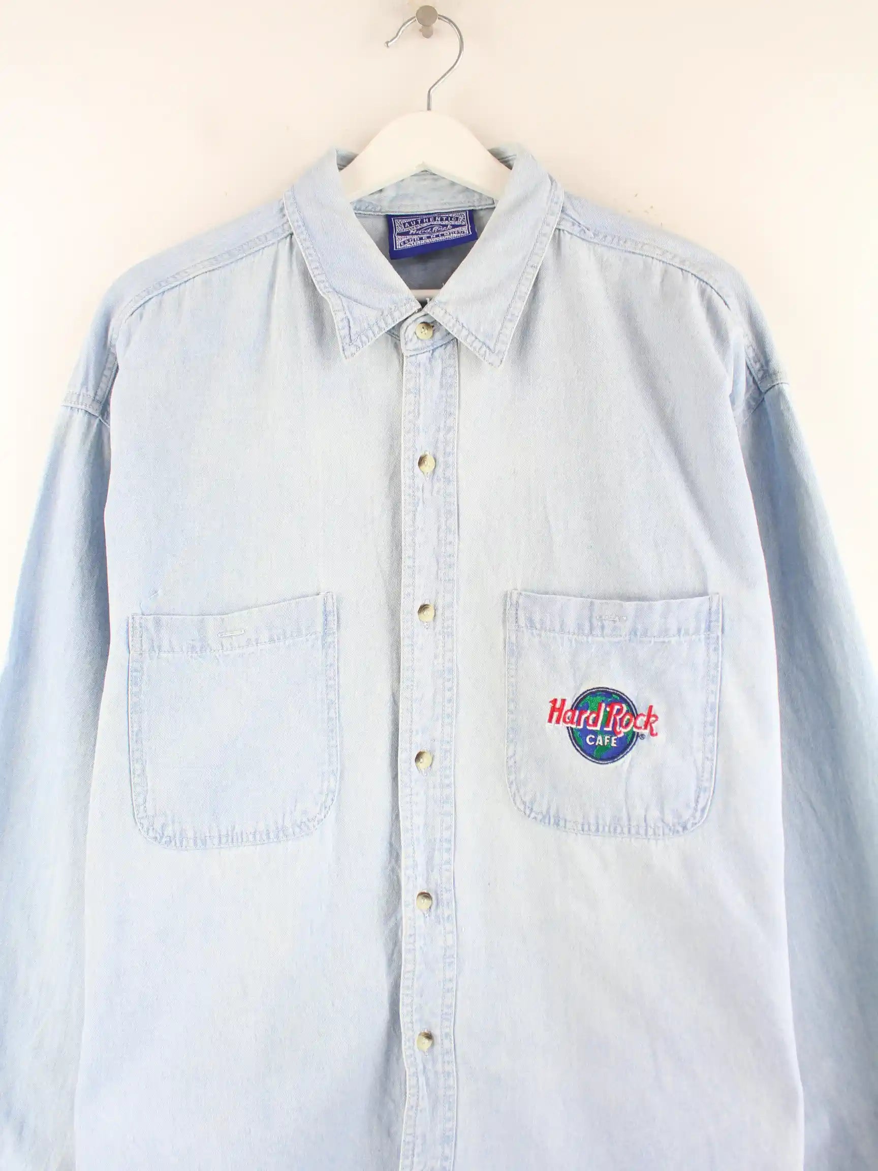 Hard Rock Cafe 90s Vintage Embroidered Hemd Blau XL