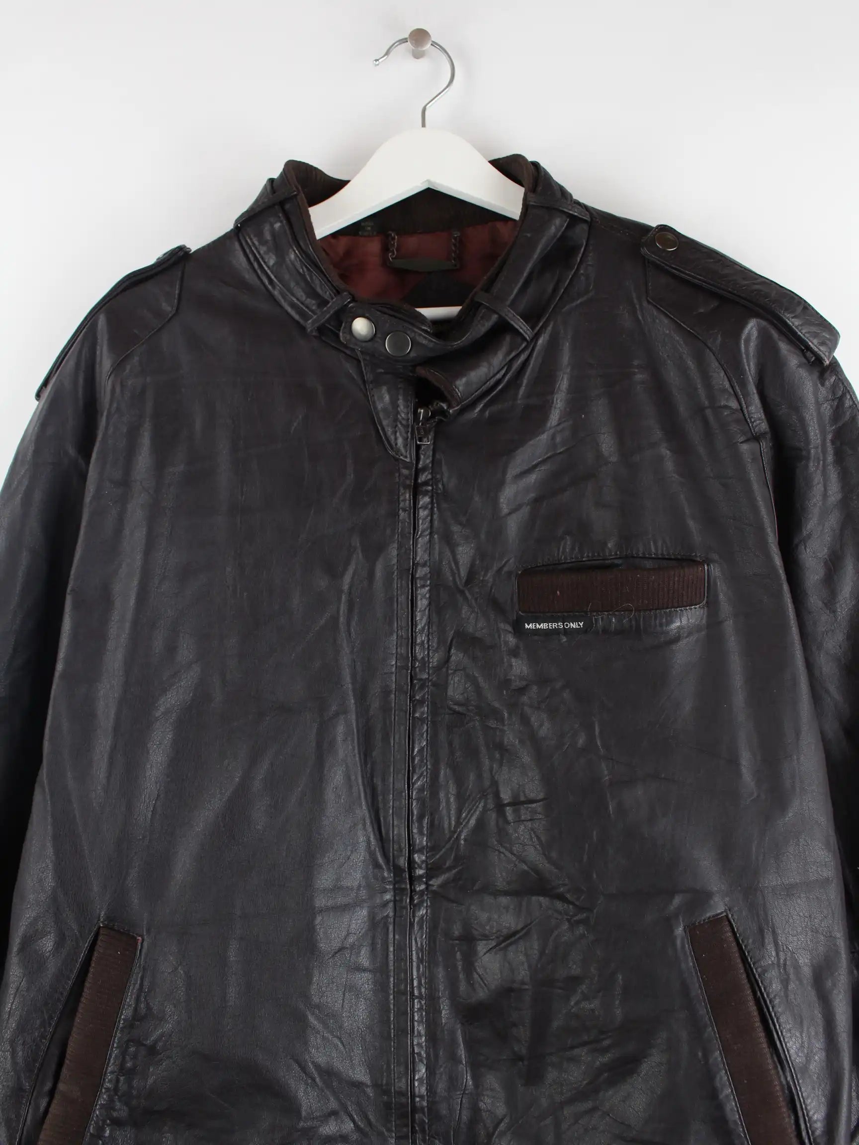 Braune Jacke des Labels Members Only in Größe XL. Sie ist aus Leder hergestellt und in gutem Zustand im Bestand.