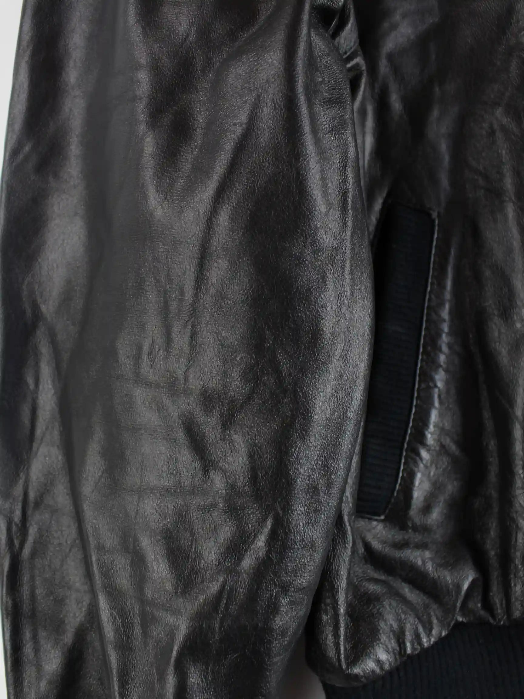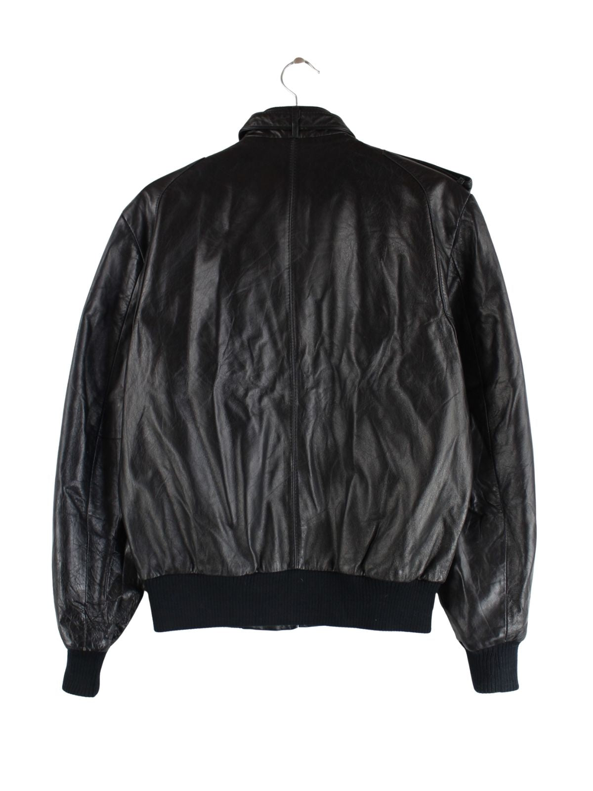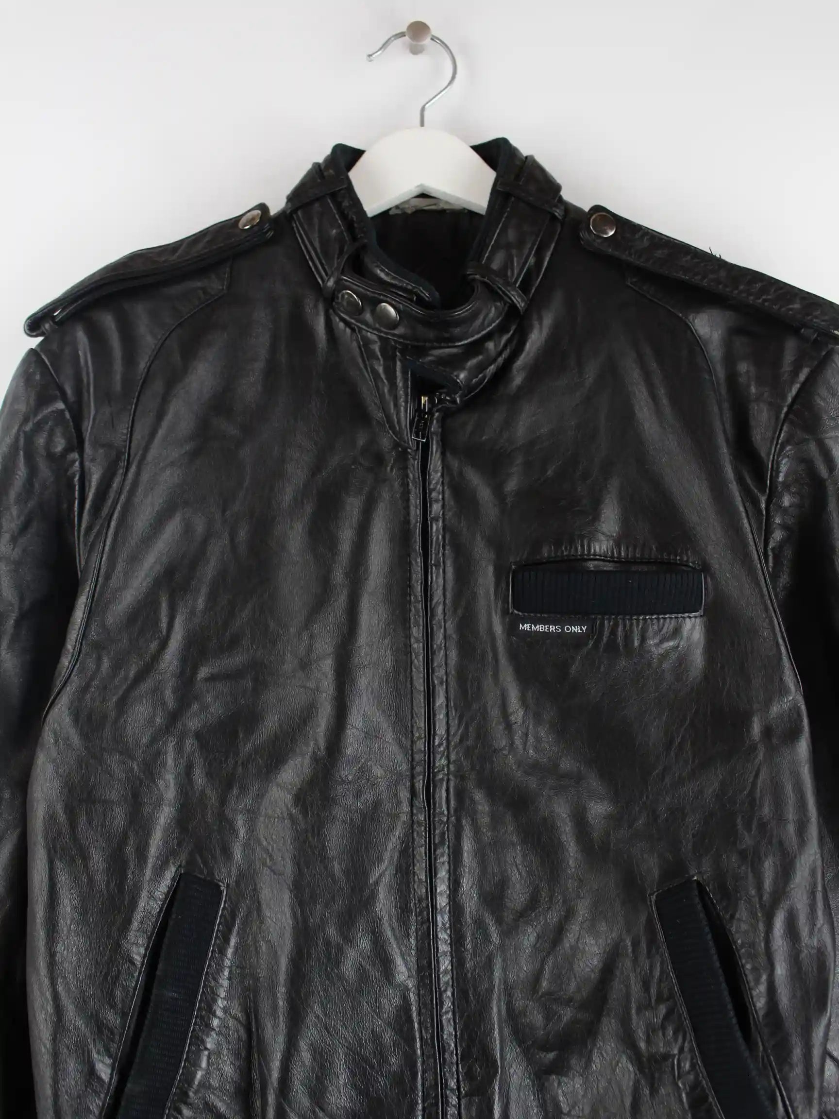 Jacke des Labels Members Only in Größe S. Sie ist aus Leder gefertigt und in Schwarz bei uns zu bekommen.