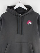 Hoodie des Labels Nike in Größe S. Er ist aus einer Baumwollmischung und in Grau auf Lager. Mit tollem Print.