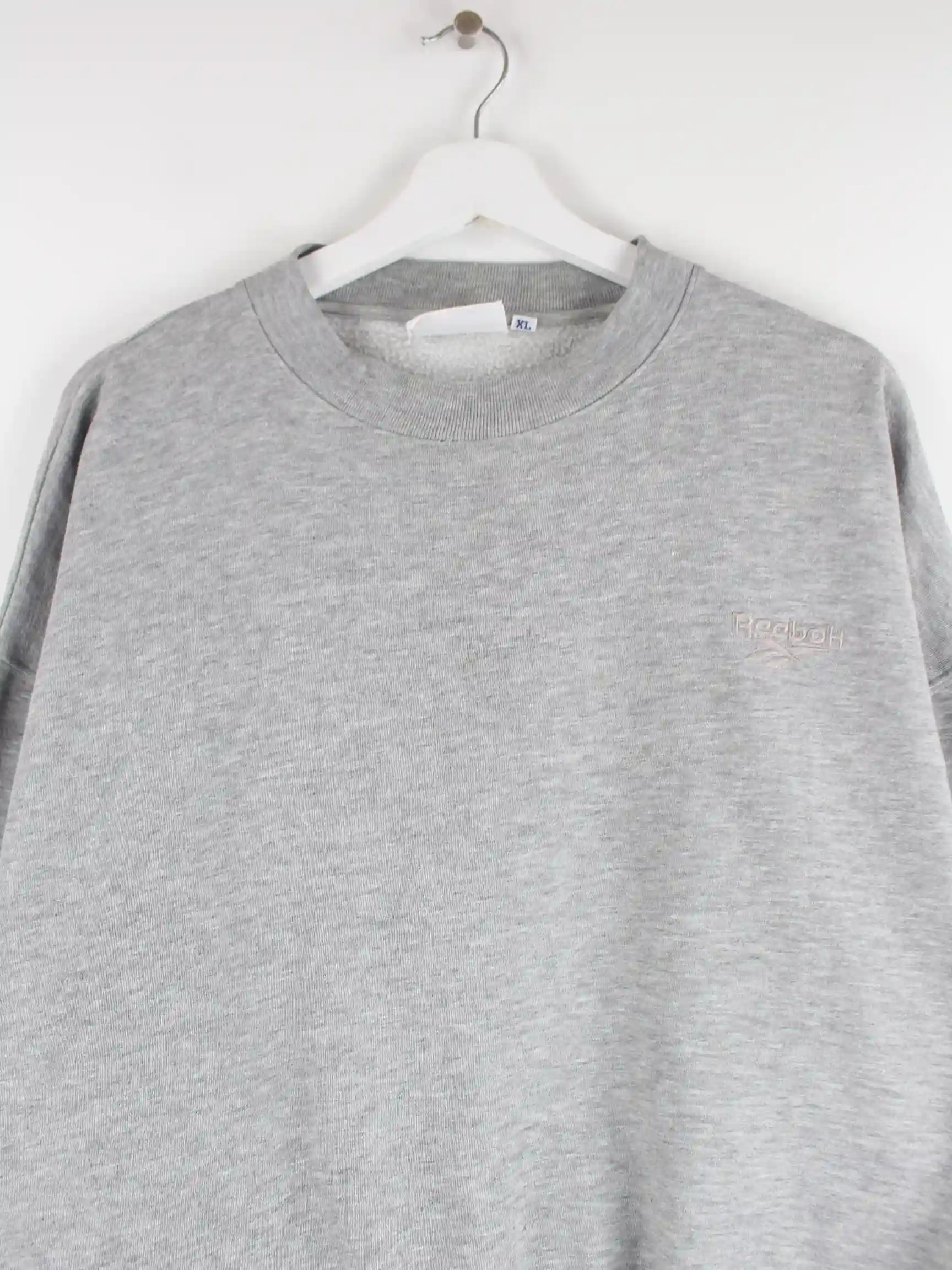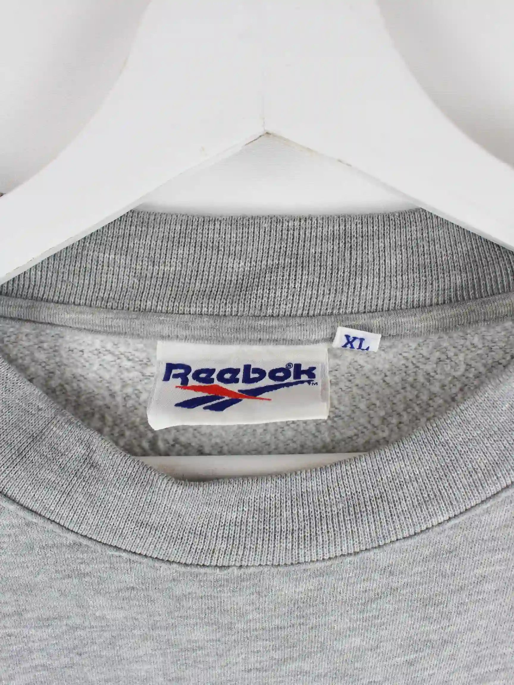 Sweater aus dem Hause Reebok in Größe XL aus den 90'ern. Er ist aus einer Baumwollmischung gefertigt und in Grau vorrätig.
