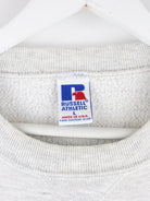 Sweater von Russell Athletic in Größe L aus den 90'ern. Er ist aus einer Baumwollmischung gefertigt und in Grau im Angebot. Mit chiquem Eagles Print.