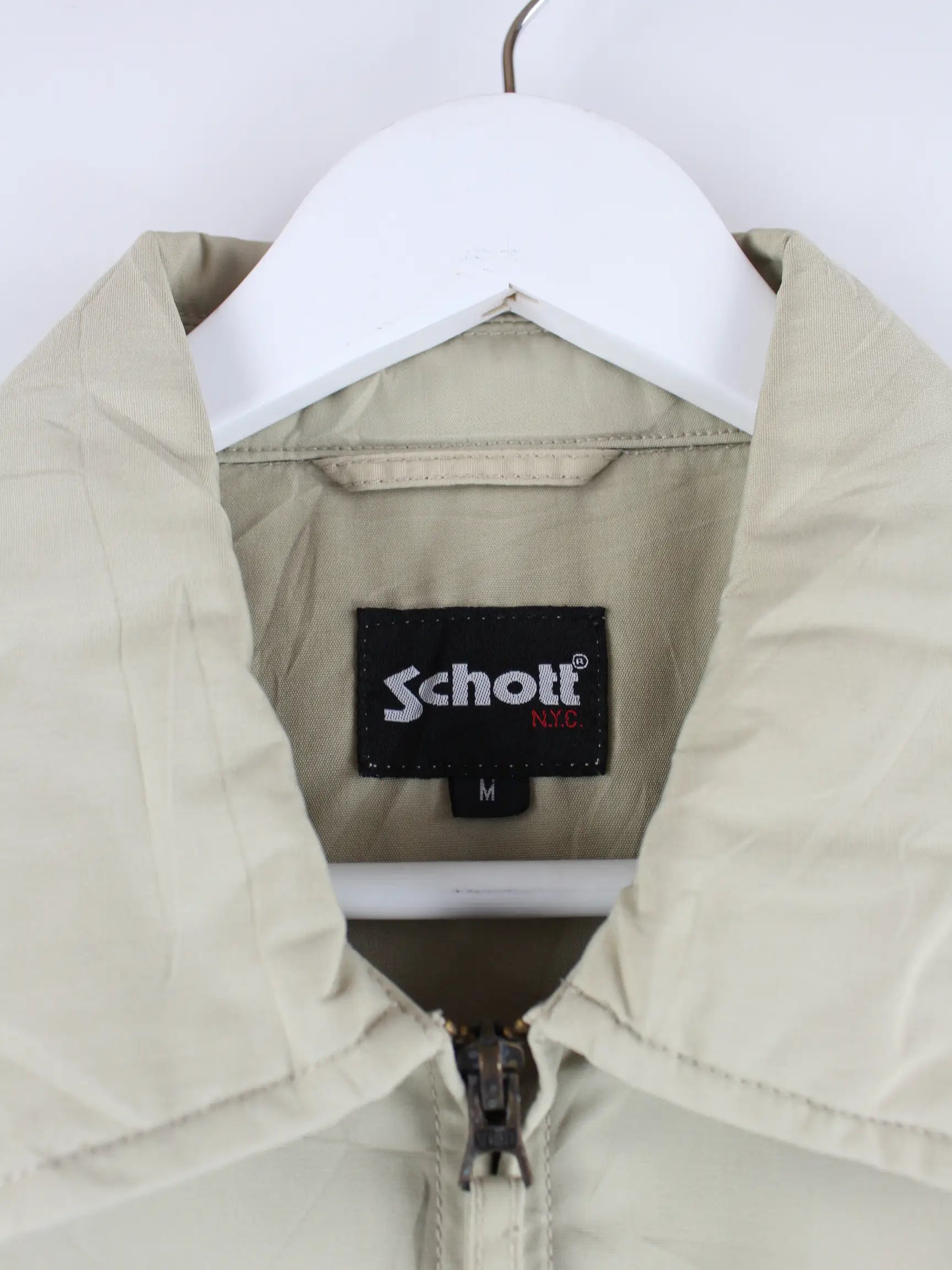 Leichte Jacke des Labels Schott in Größe M. Sie ist aus Synthetik produziert und in Beige im Bestand.