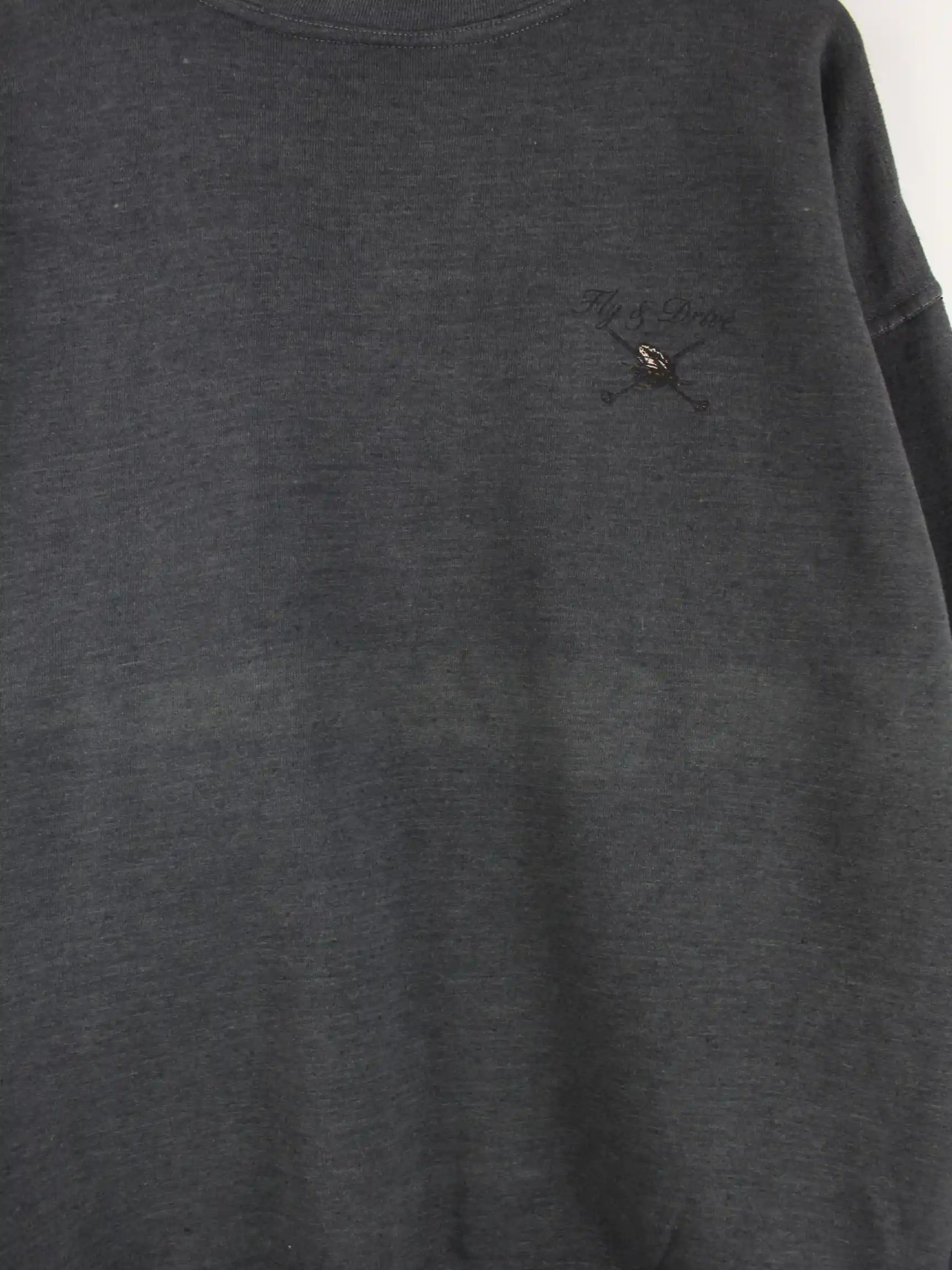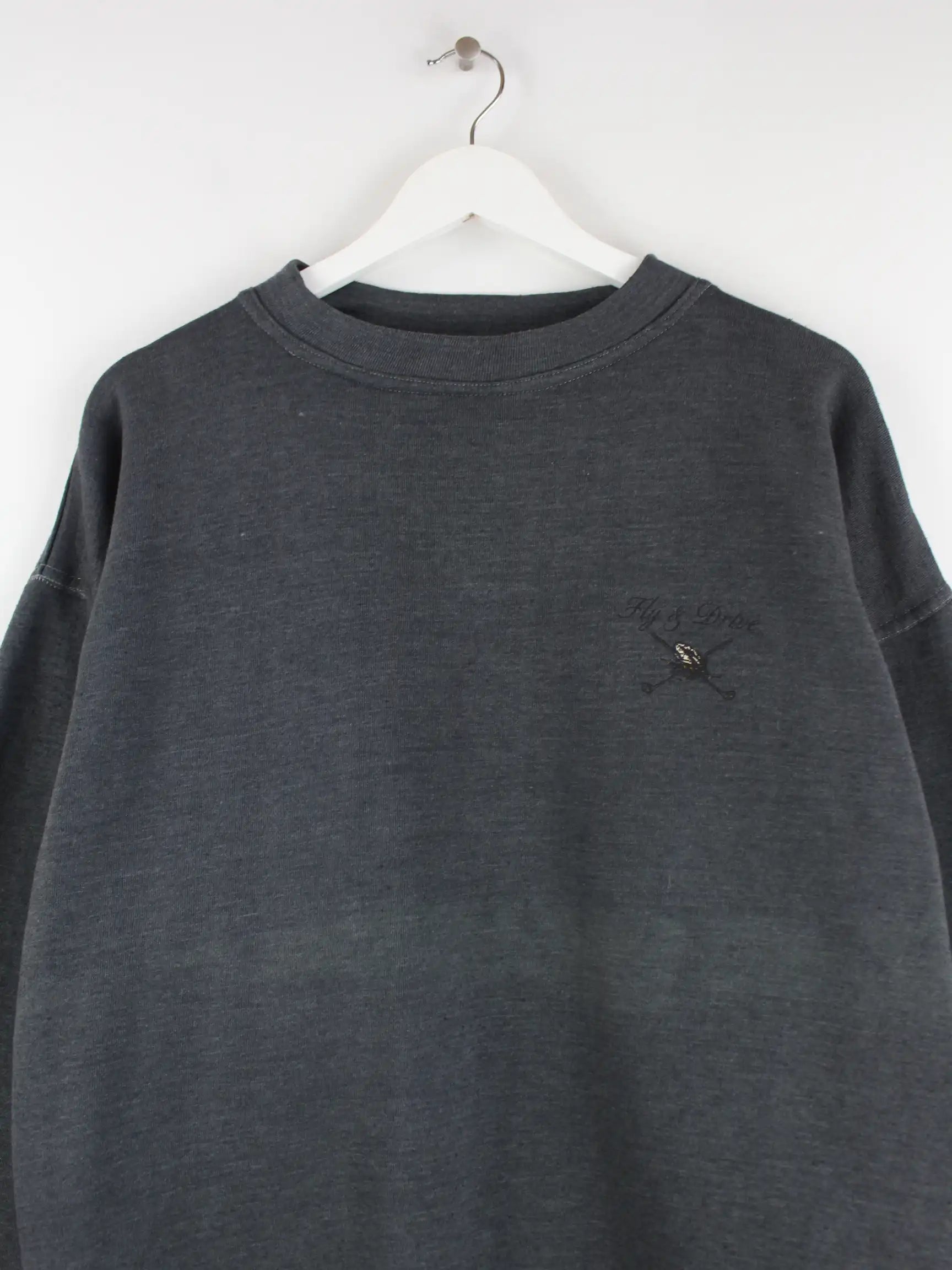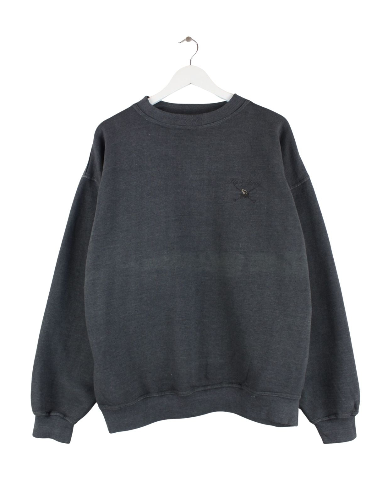 Vintage Sweater in Größe L. Er ist aus einer Baumwollmischung und in Grau lieferbar. Mit seltenem Golf Print.