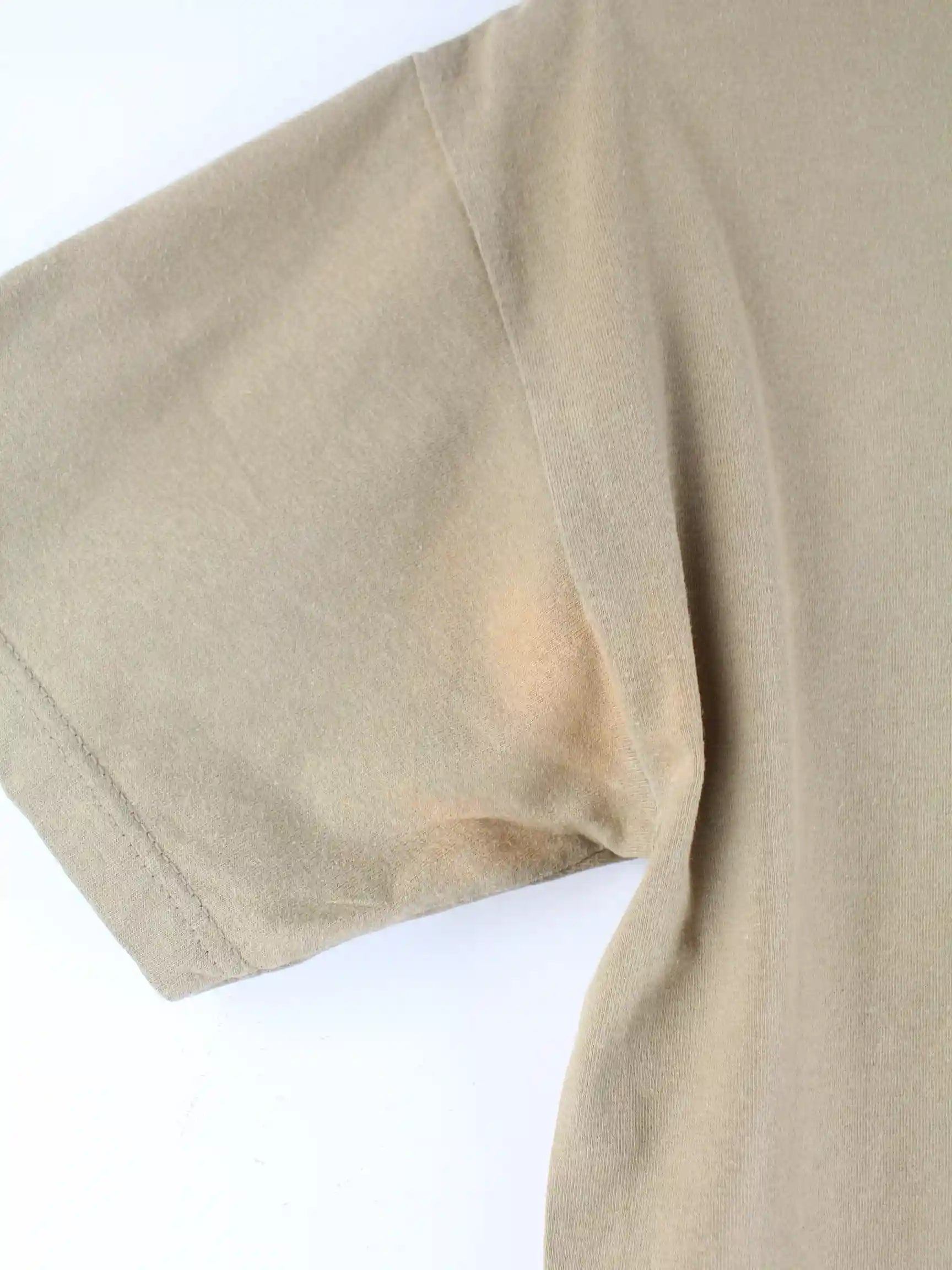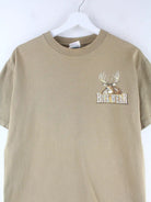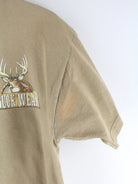 Braunes Vintage T-Shirt in Größe M. Es ist aus Baumwolle produziert. Den Zustand würden wir als 'In Ordnung' bezeichnen (vergl. Bilder).Mit chiquem Hunting Print.