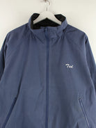 Blaue Vintage Bowling Jacke in Größe L aus den 90er Jahren. Sie ist aus Synthetik und in gutem Zustand vorrätig.