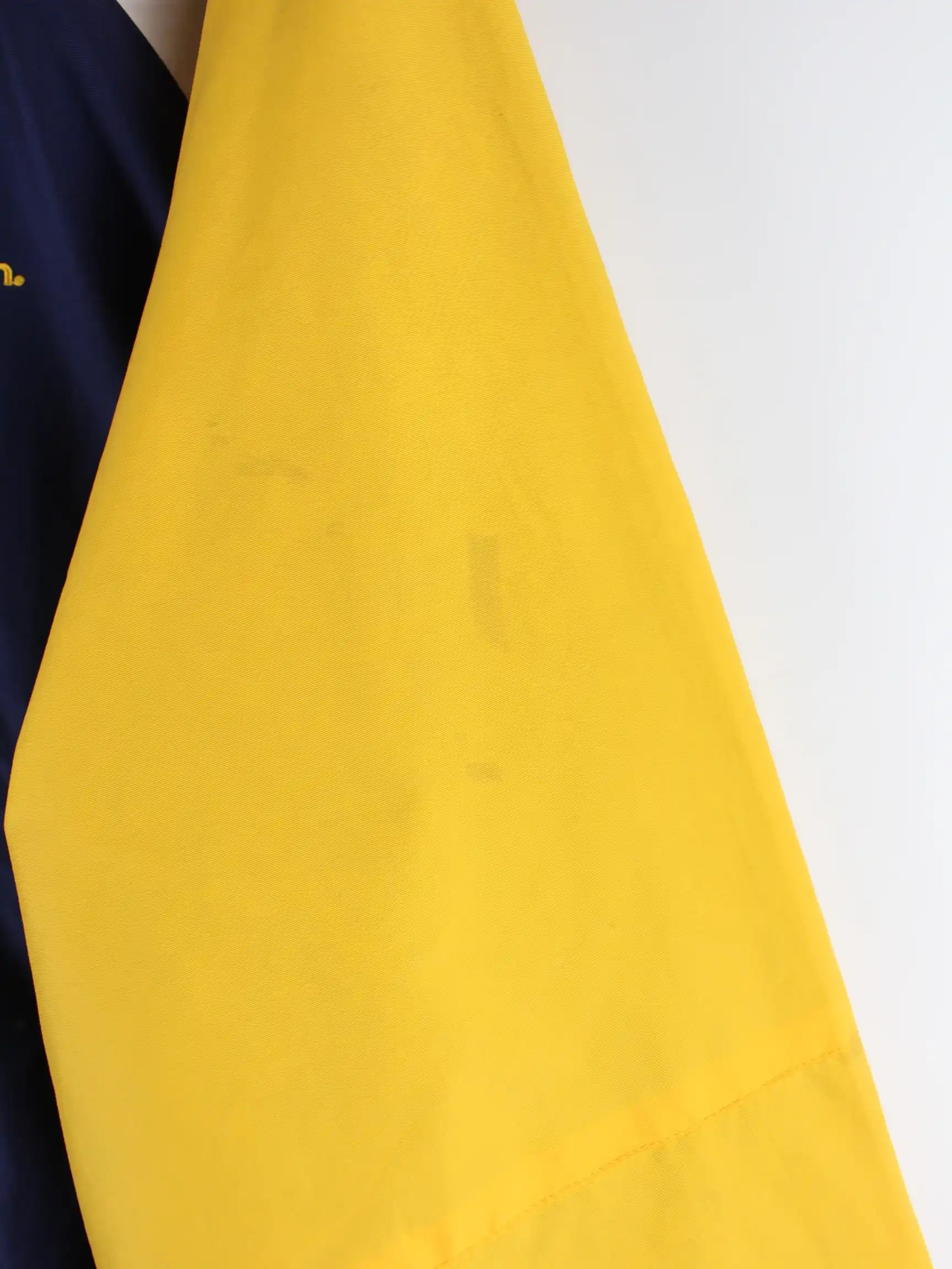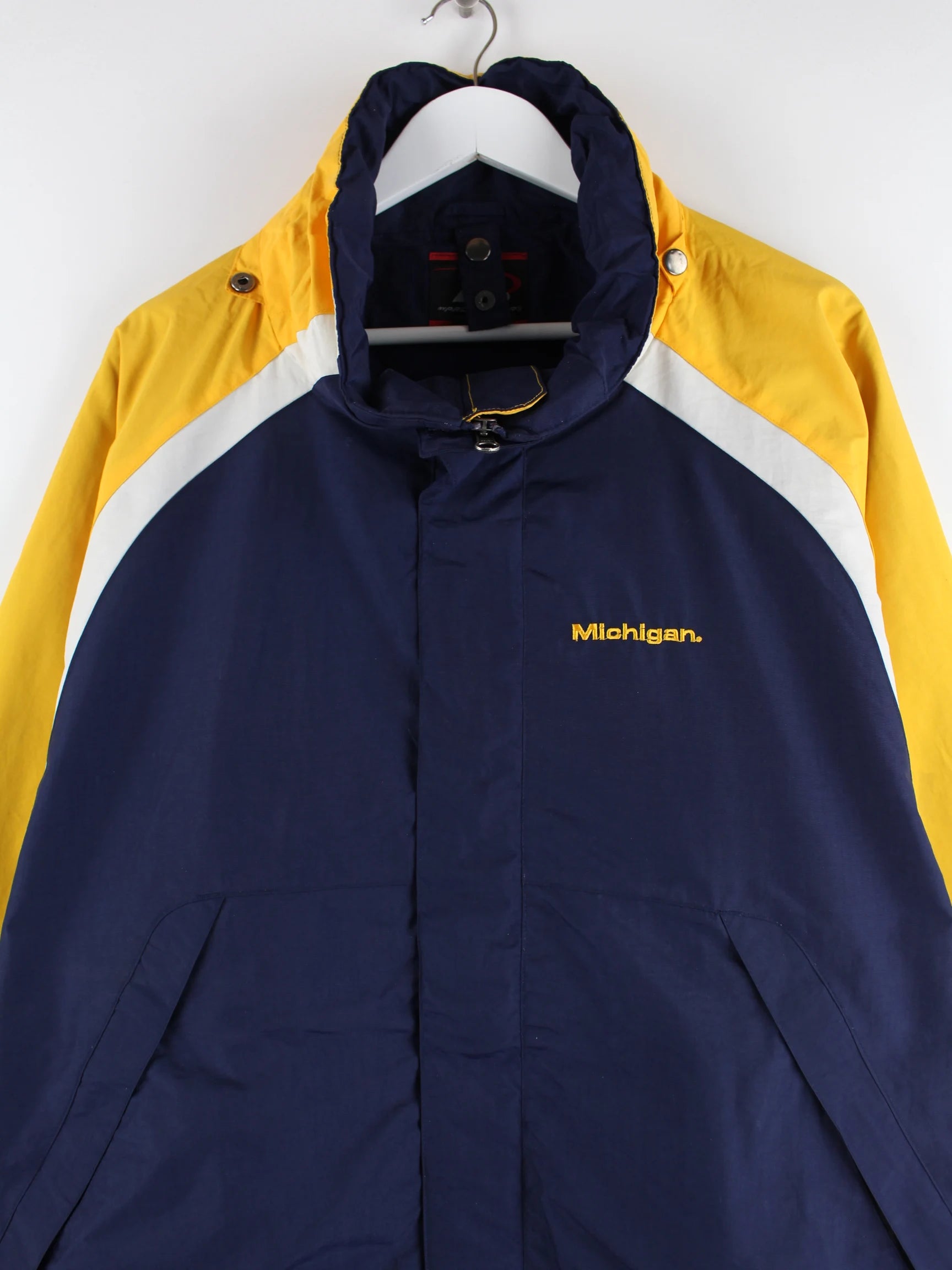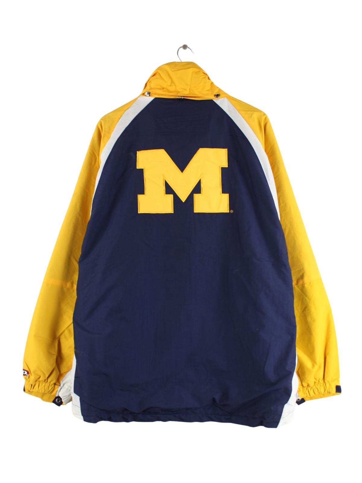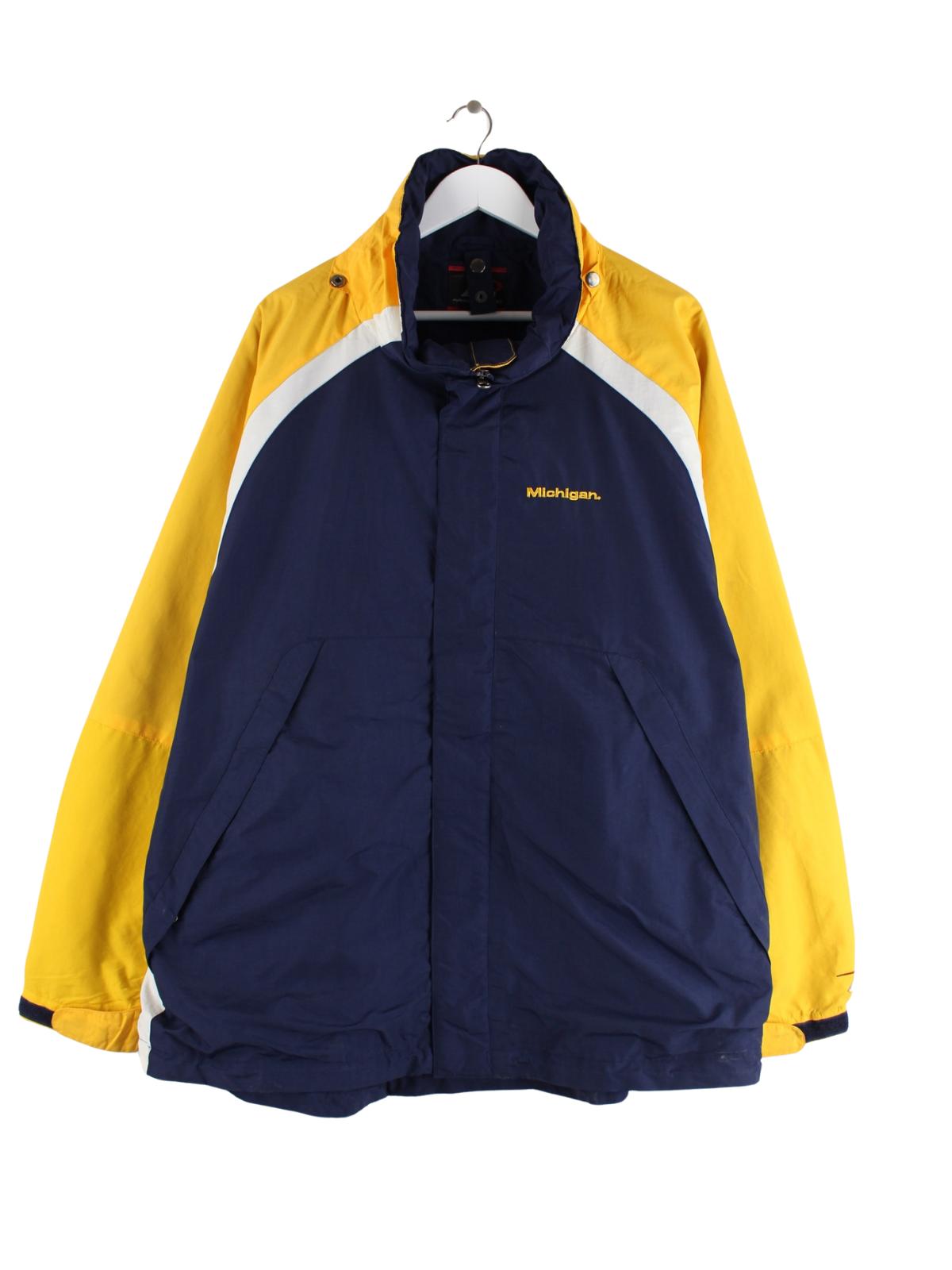 Vintage Jacke der University of Michigan in Größe 3XL. Sie ist aus Synthetik produziert und in Blau zu haben.