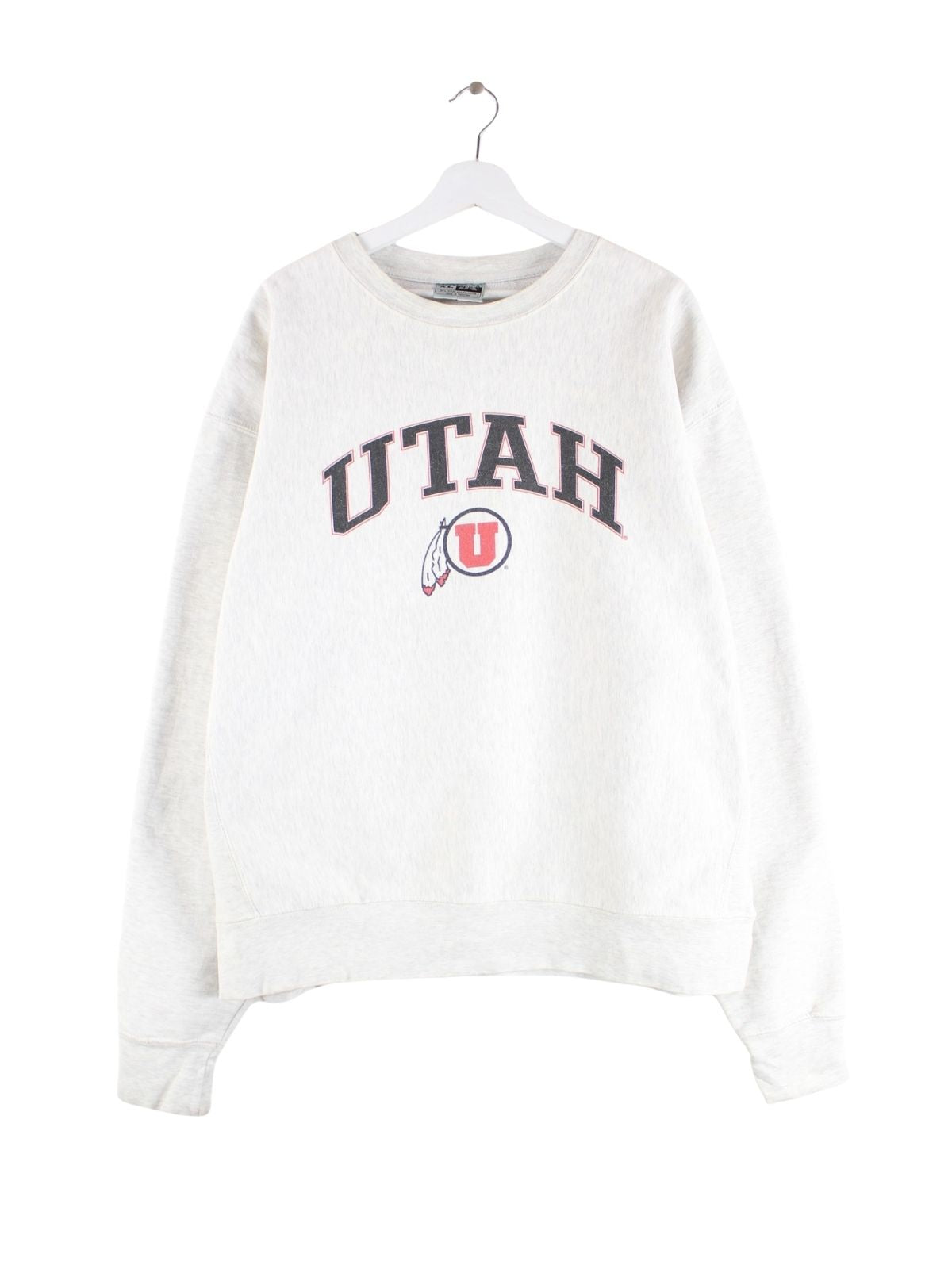 Vintage Sweater in Größe XL. Er ist aus einer Baumwollmischung hergestellt und in Grau lieferbar. Mit tollem Utah Print.