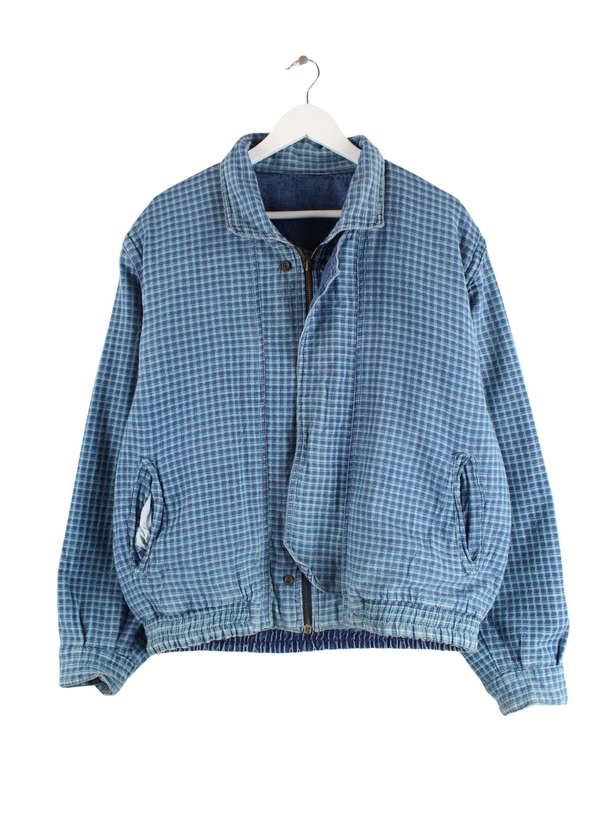 Blaue Vintage Jacke in Größe XL. Sie ist aus Baumwolle gefertigt und in gutem Zustand auf Lager.