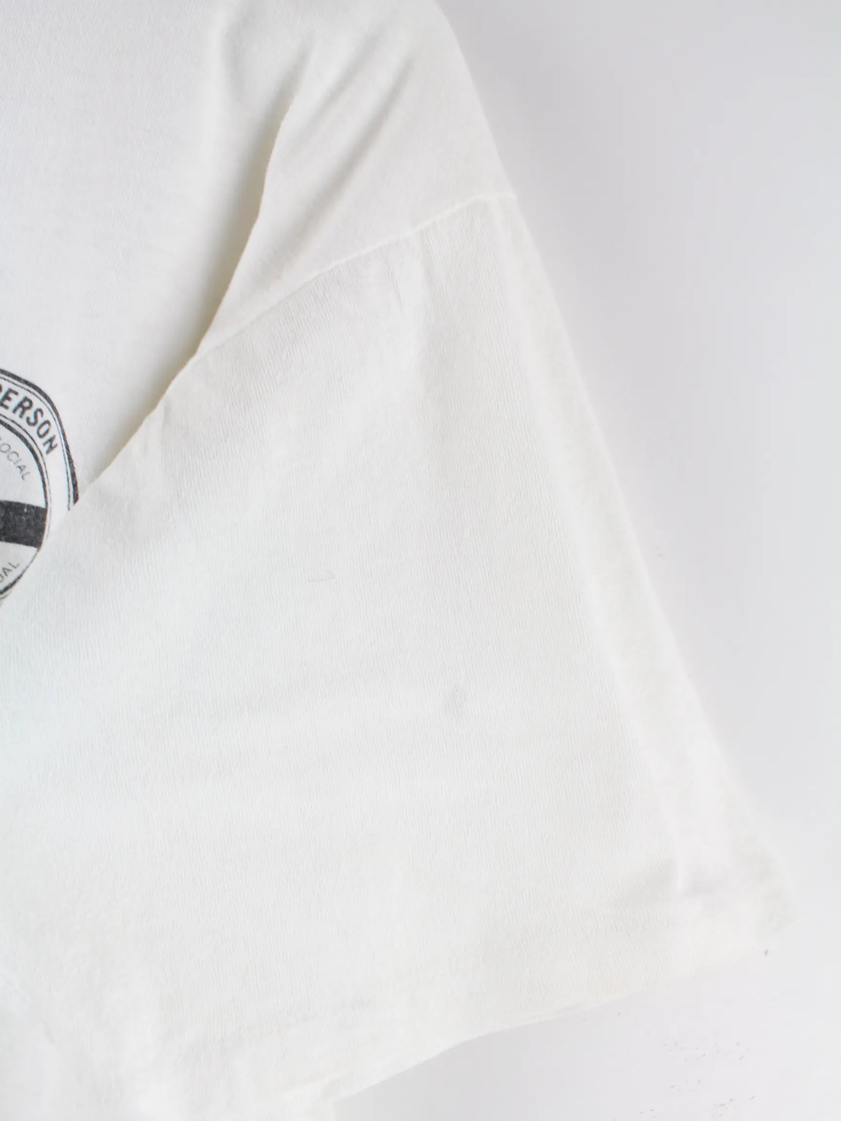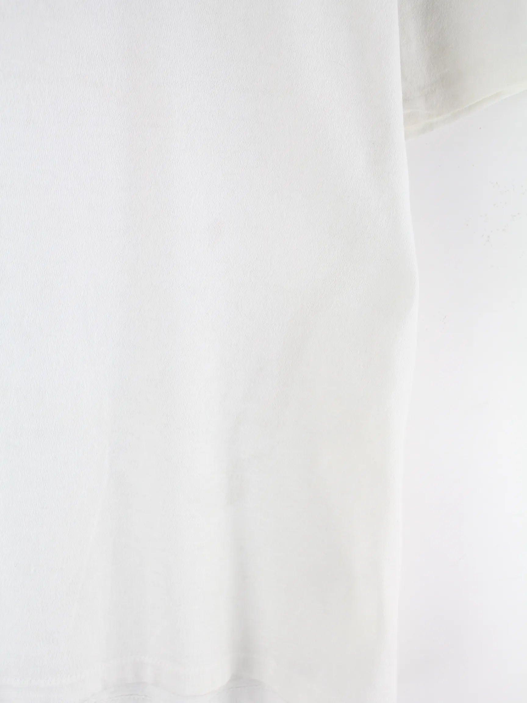 Vintage T-Shirt in Größe L. Es ist aus einer Baumwollmischung gemacht und in Weiß bei uns zu bekommen. Mit chiquem Family Print.