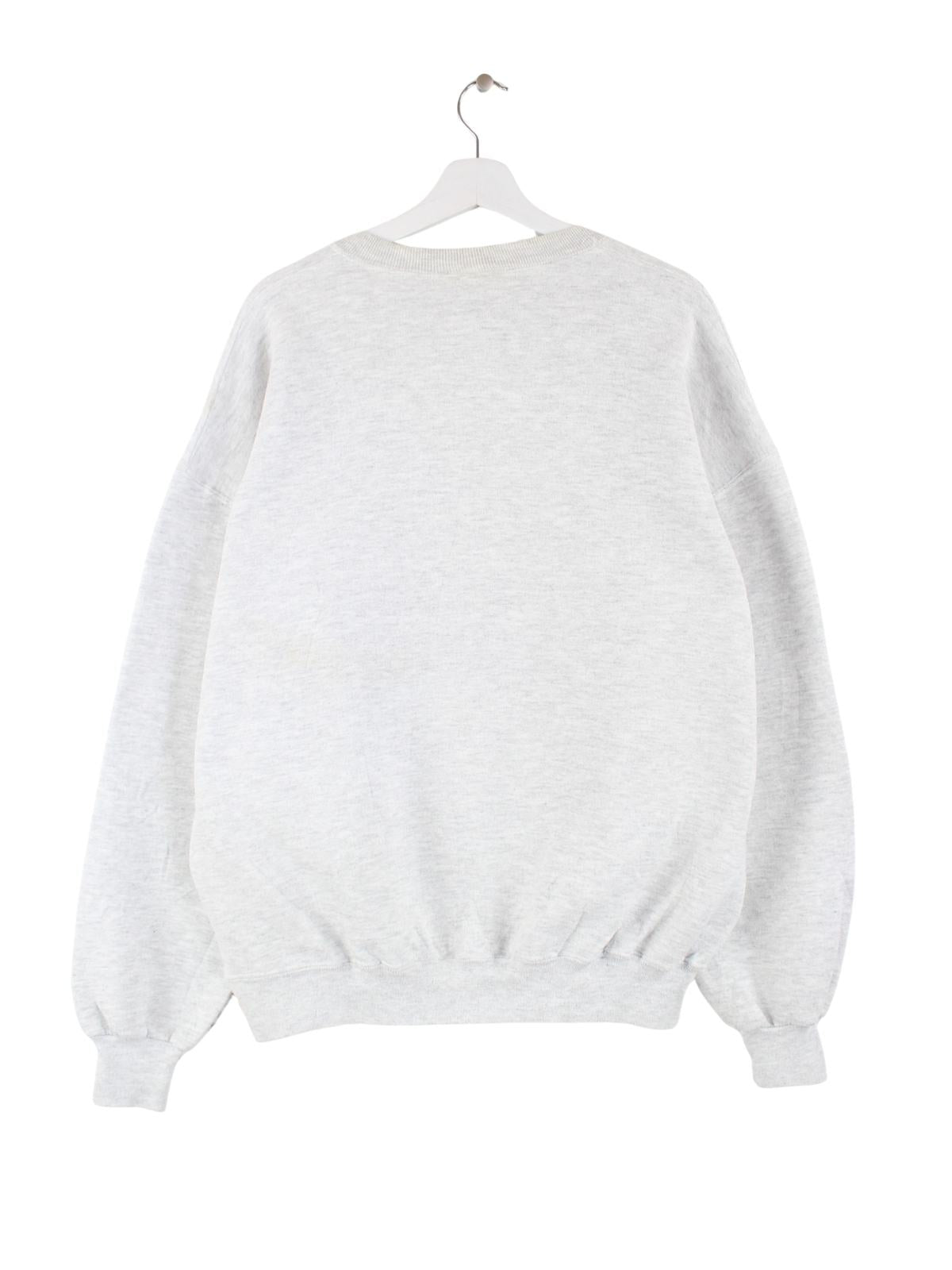 Grauer Vintage Sweater in Größe XL. Er ist aus einer Baumwollmischung und in gutem Zustand zu haben.
