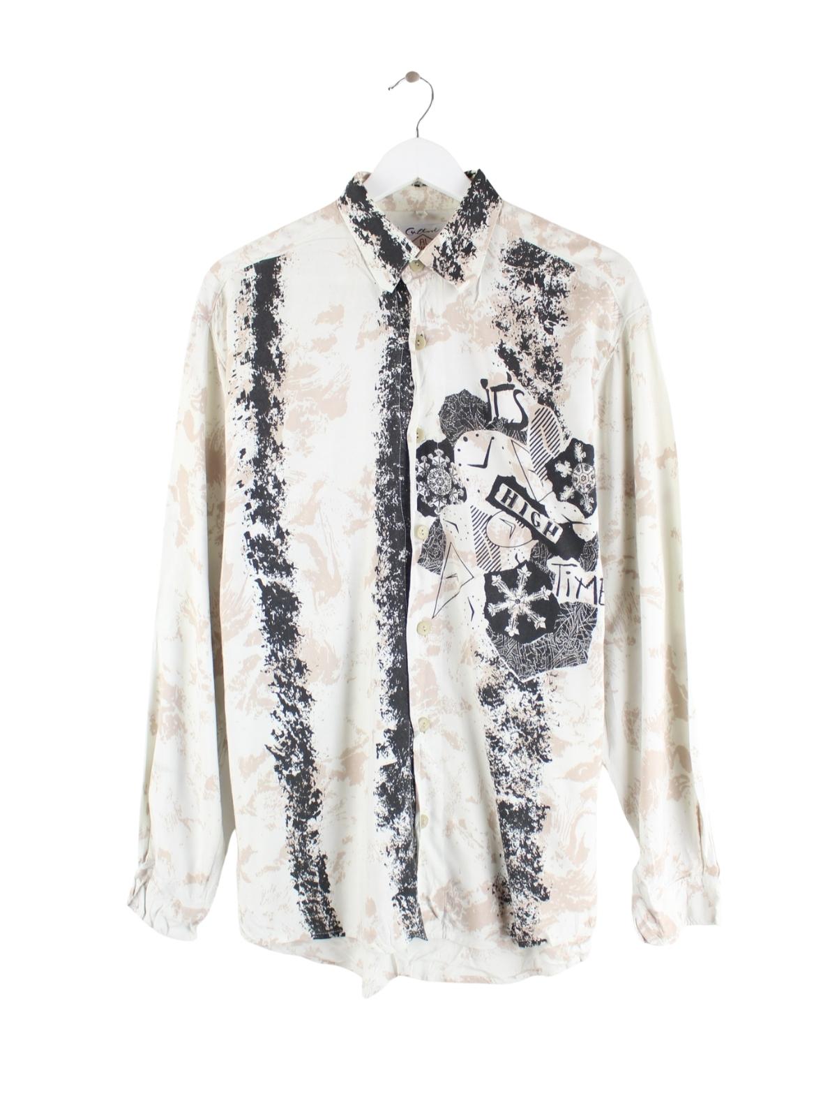 Beigefarbenes Vintage Crazy Pattern Freizeit Hemd aus den 80ern in Größe M. Es ist aus Baumwolle hergestellt und in sehr gutem Zustand bei uns vorrätig.