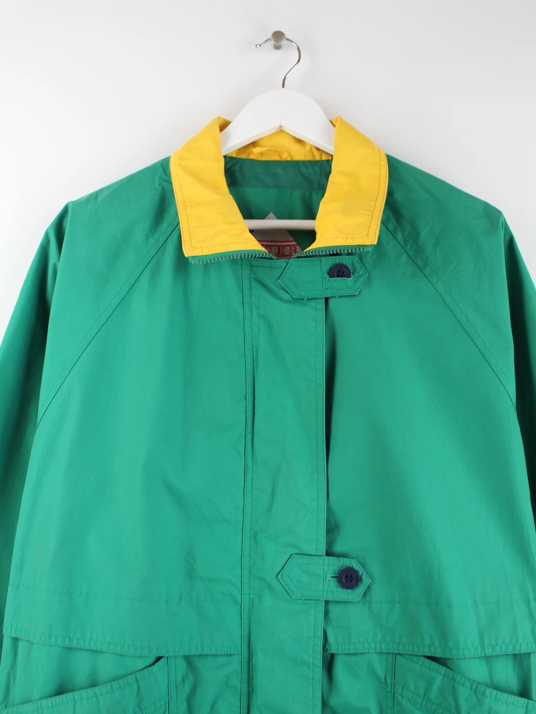 Vintage Leichte Jacke in Größe M aus den 80'ern. Sie ist aus Synthetik und in Grün auf Lager.