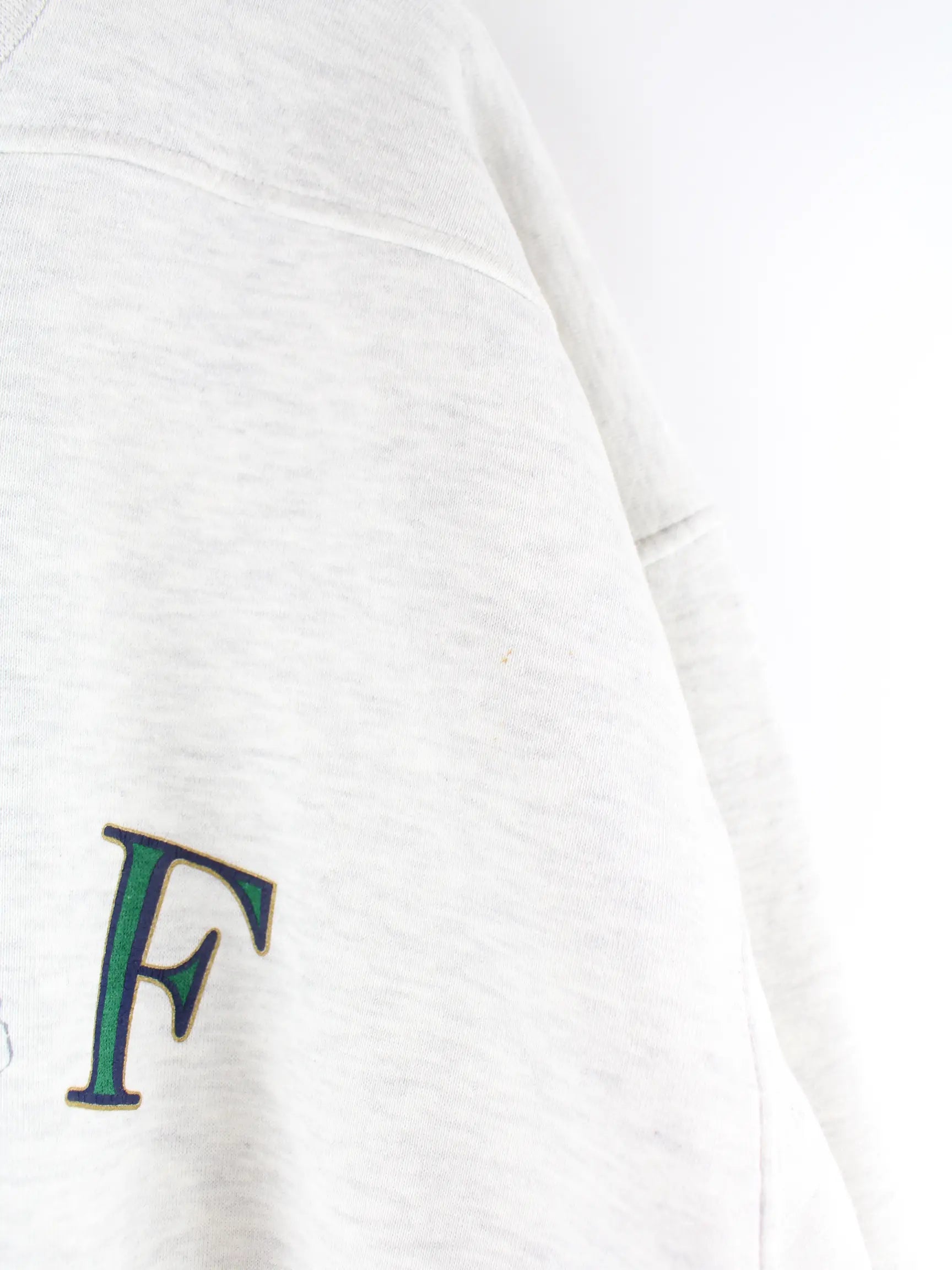 Vintage Sweater in Größe 3XL aus den 90'ern. Er ist aus einer Baumwollmischung hergestellt und in Grau lieferbar. Mit seltenem Golf Print.