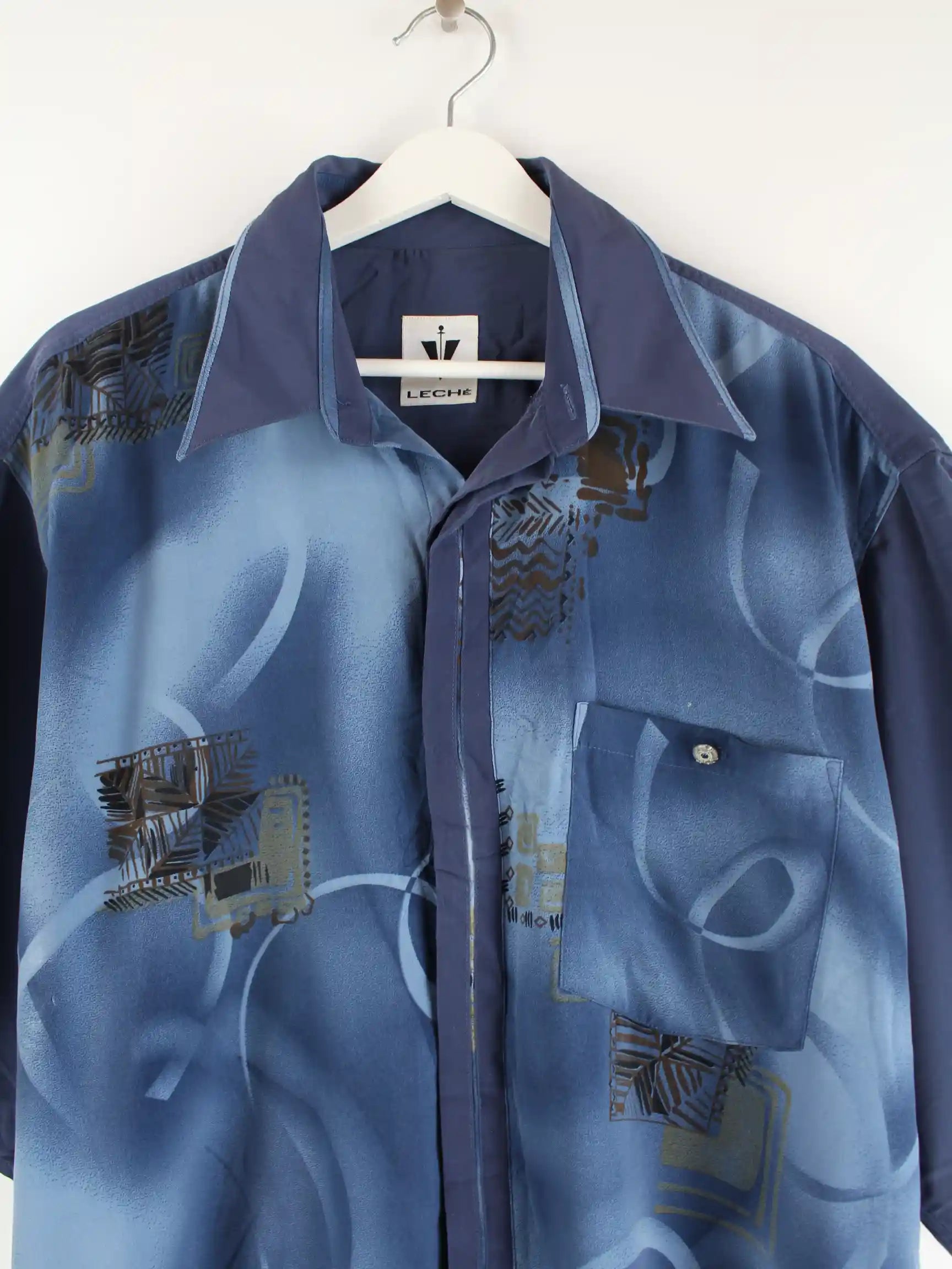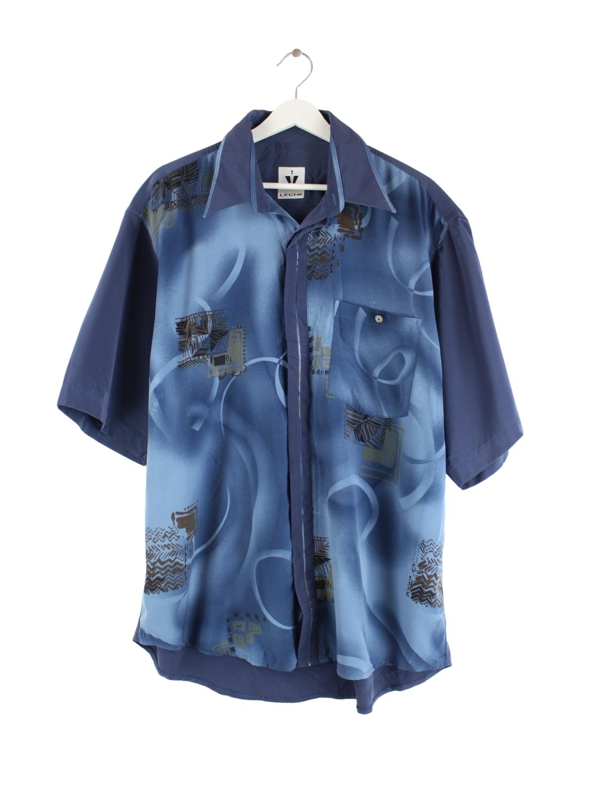 Vintage Freizeit Hemd in Größe L aus den 90'ern. Es ist aus Synthetik produziert und in Blau lieferbar.