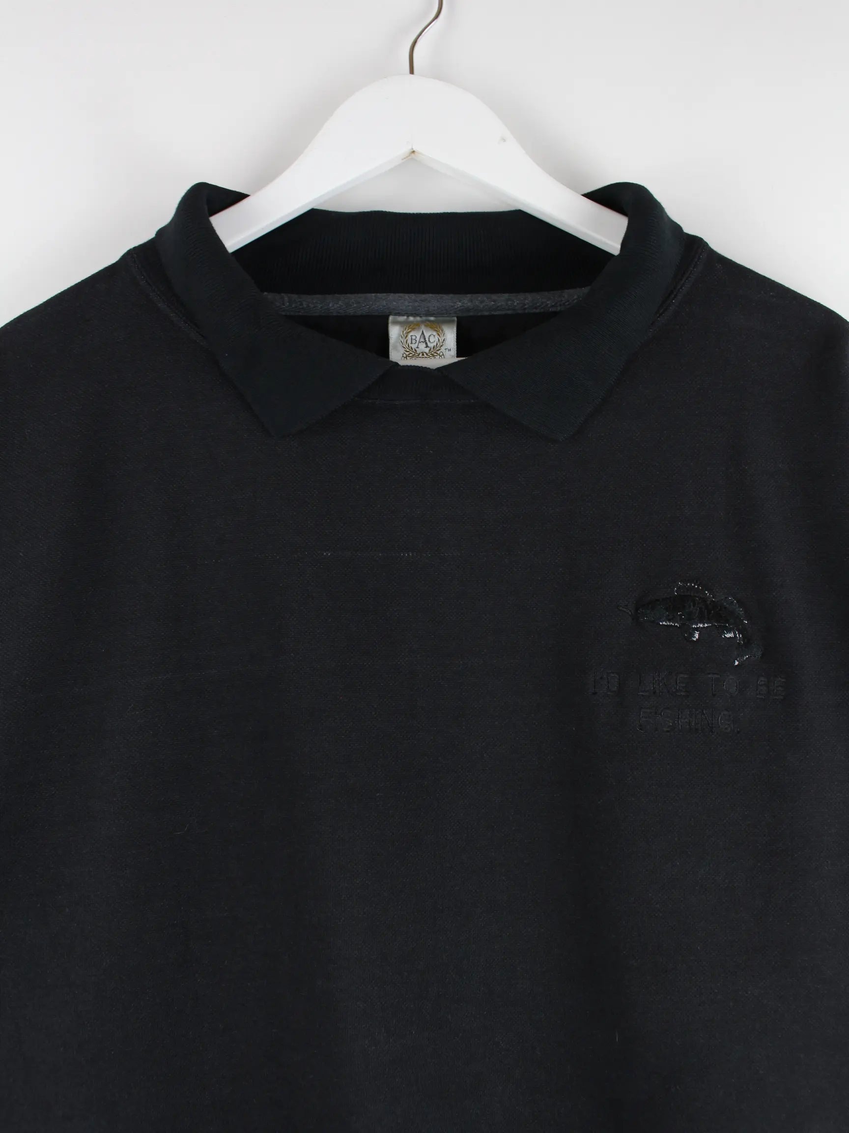Vintage Sweater in Größe L aus den 90'ern. Er ist aus einer Baumwollmischung hergestellt und in Schwarz im Angebot.