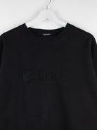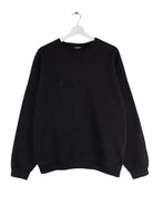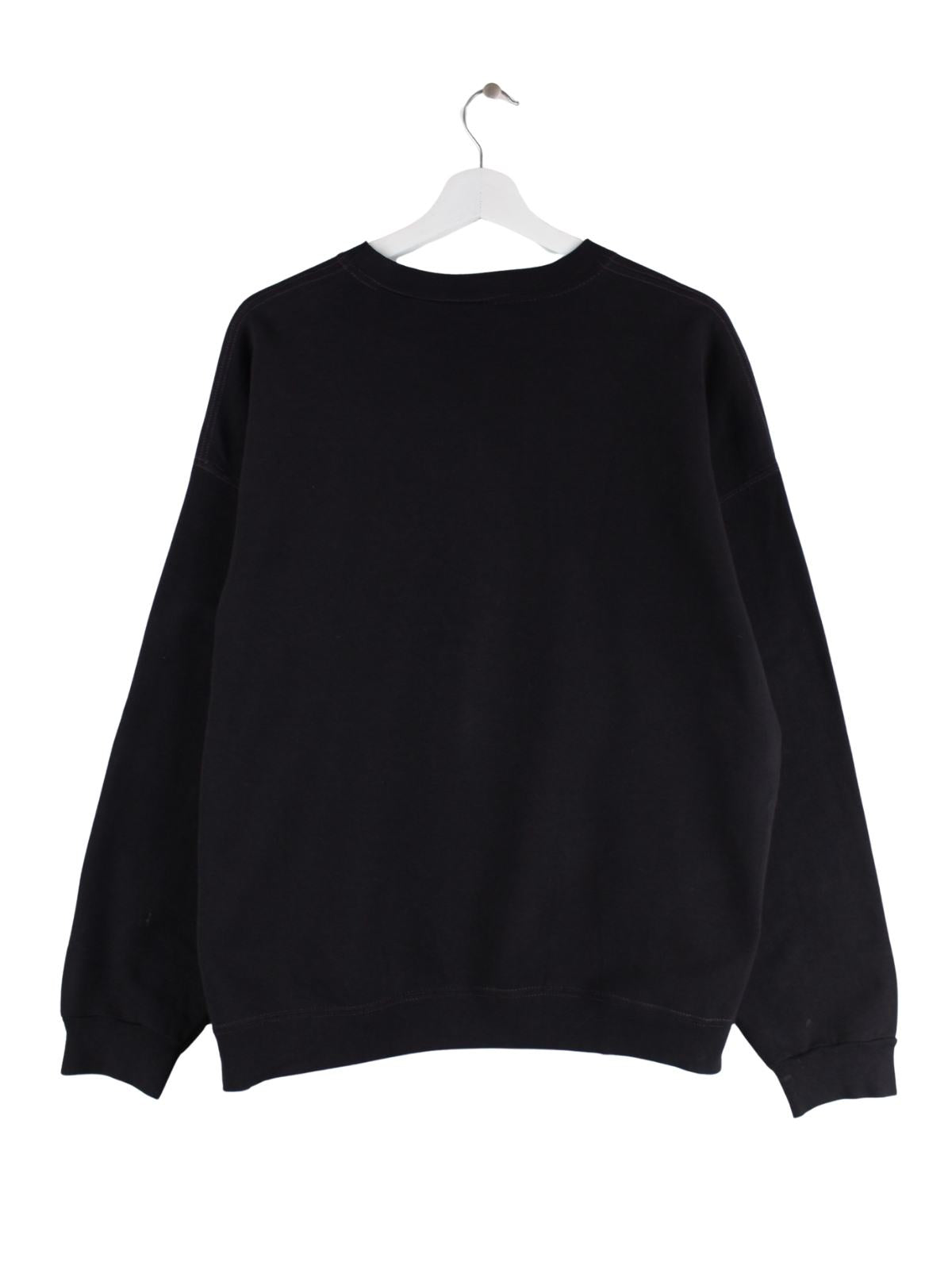 Schwarzer Vintage Sweater aus den 90'ern in Größe L. Er ist aus einer Baumwollmischung produziert. Den Zustand würden wir als 'In Ordnung' bezeichnen (vergl. Bilder).