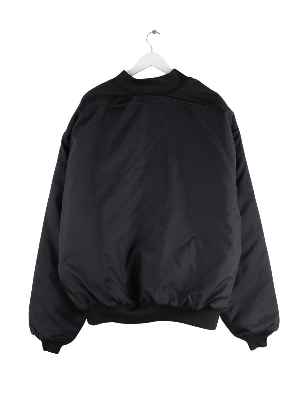 Vintage Jacke in Größe 3XL aus den 90'ern. Sie ist aus Synthetik und in Schwarz zu haben.
