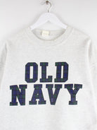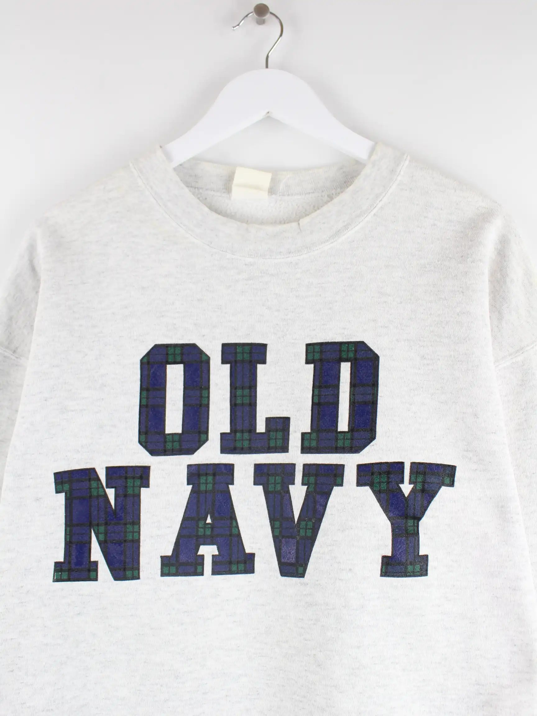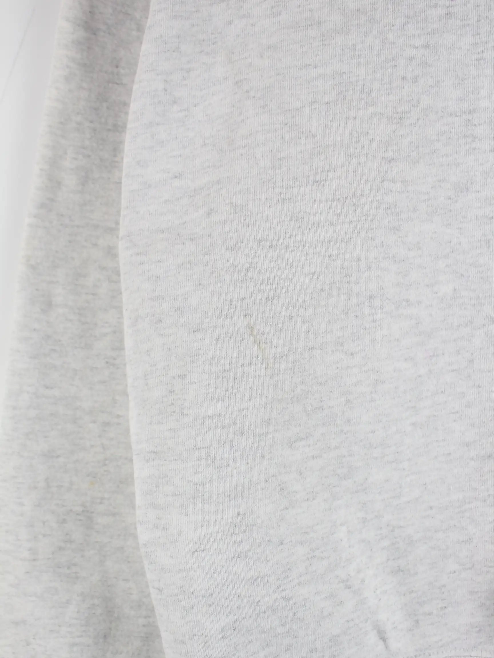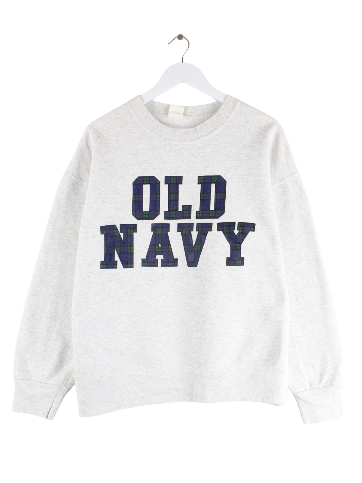 Grauer Vintage Sweater aus den 90'ern in Größe M. Er ist aus einer Baumwollmischung gemacht und in gutem Zustand im Angebot. Mit schönem Navy Print.