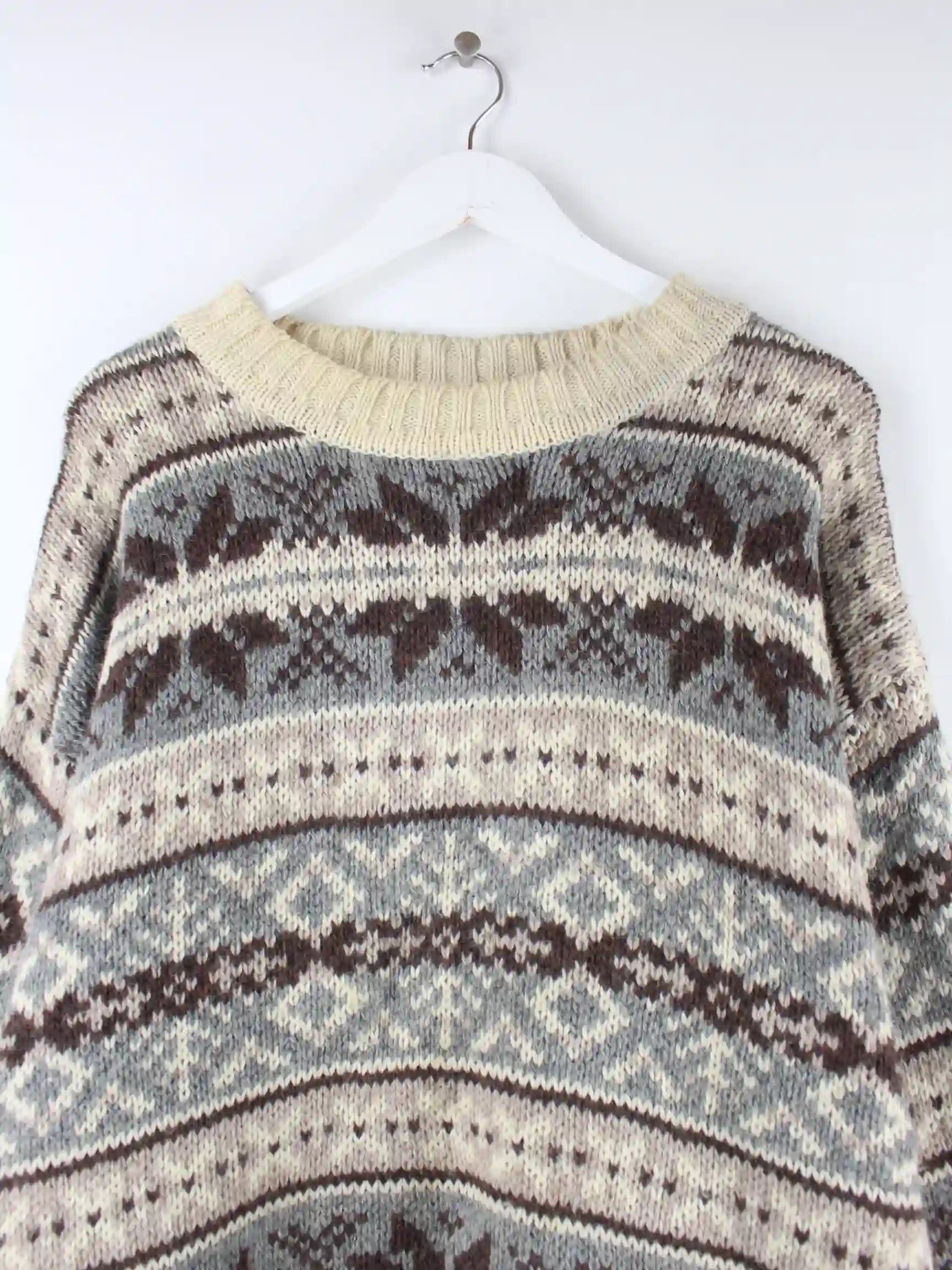 Vintage 90s Pattern Woll Pullover Mehrfarbig XXL