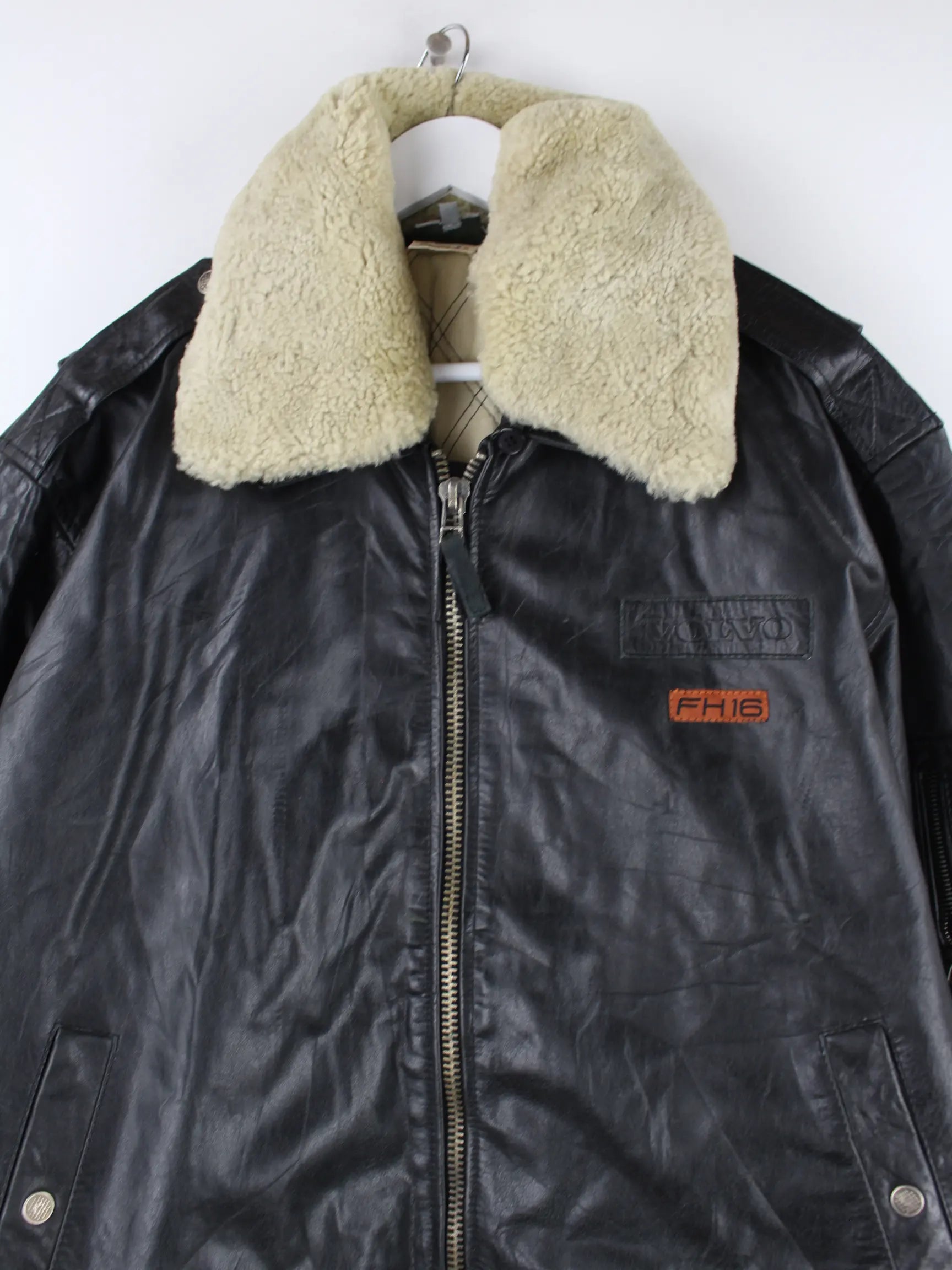 Vintage 90s Volvo Leder Bomber Jacke Schwarz XL