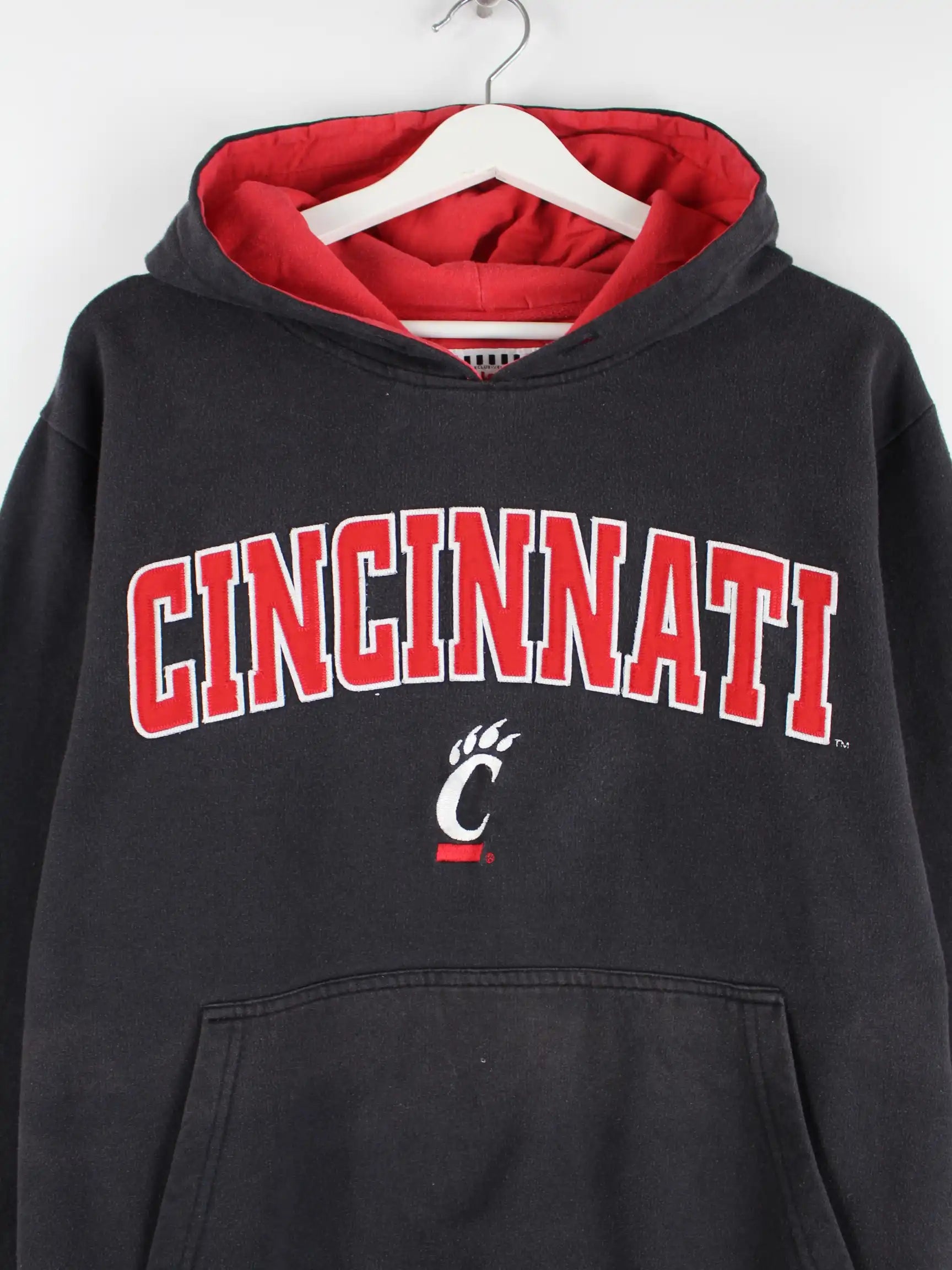 Vintage Hoodie in Größe L. Er ist aus einer Baumwollmischung gefertigt und in Schwarz zu haben.