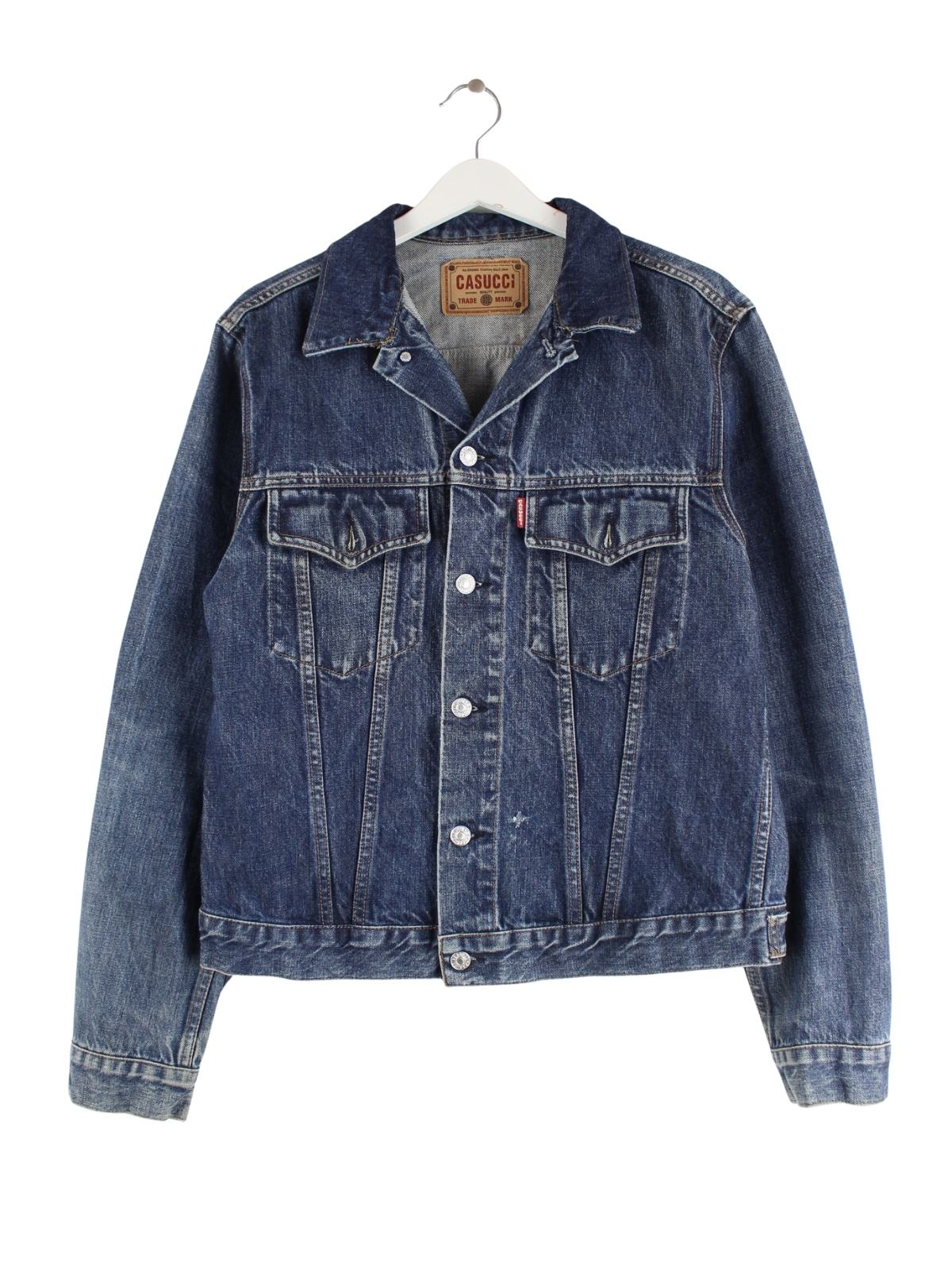 Blaue Vintage Jacke in Größe M. Sie ist aus Baumwolle und in sehr gutem Zustand lieferbar.