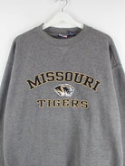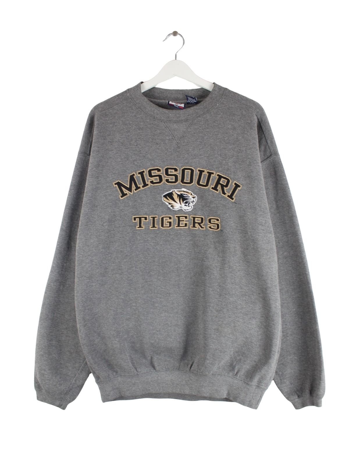 Vintage Sweater in Größe L. Er ist aus einer Baumwollmischung gemacht und in Grau lieferbar.