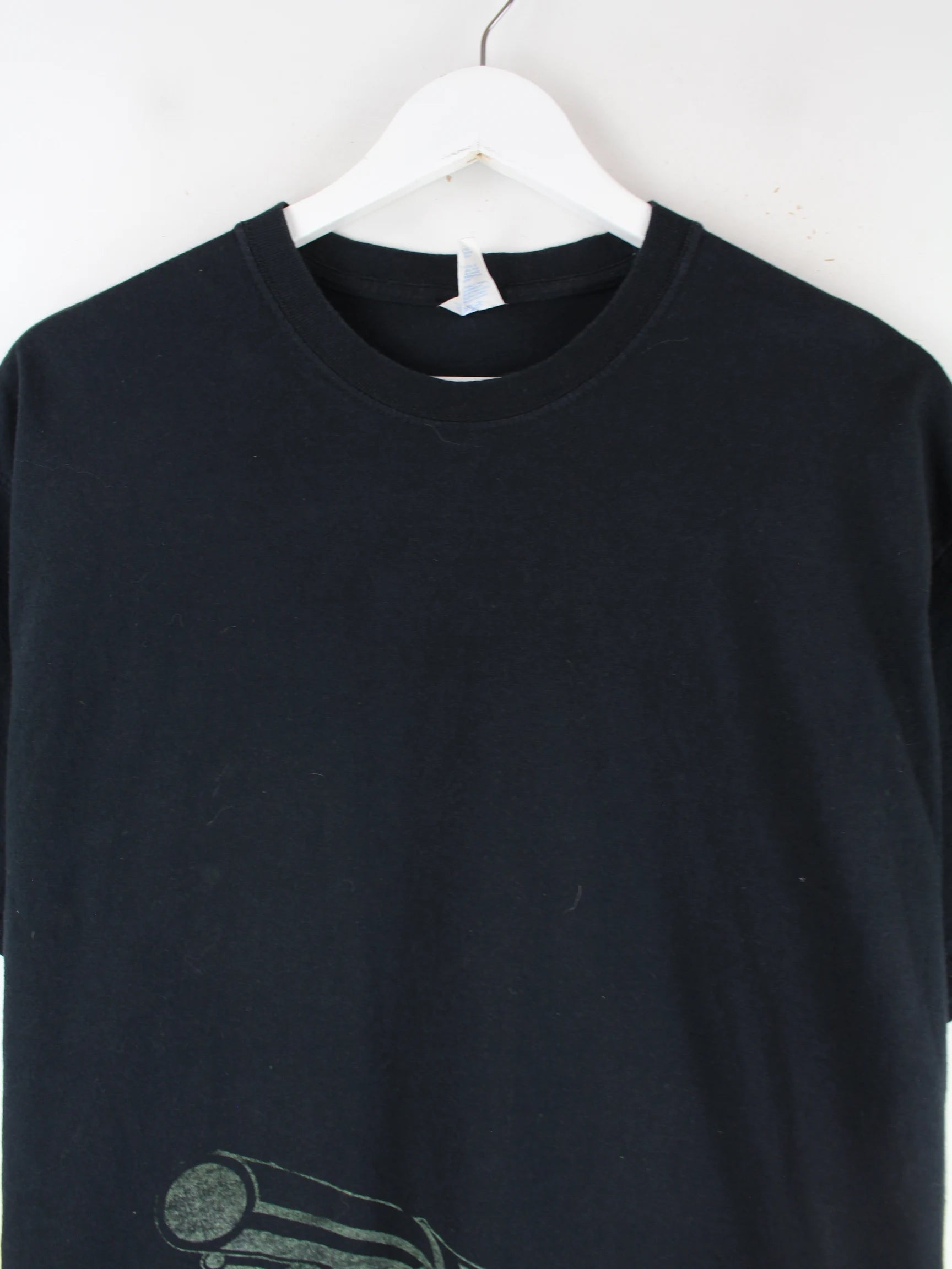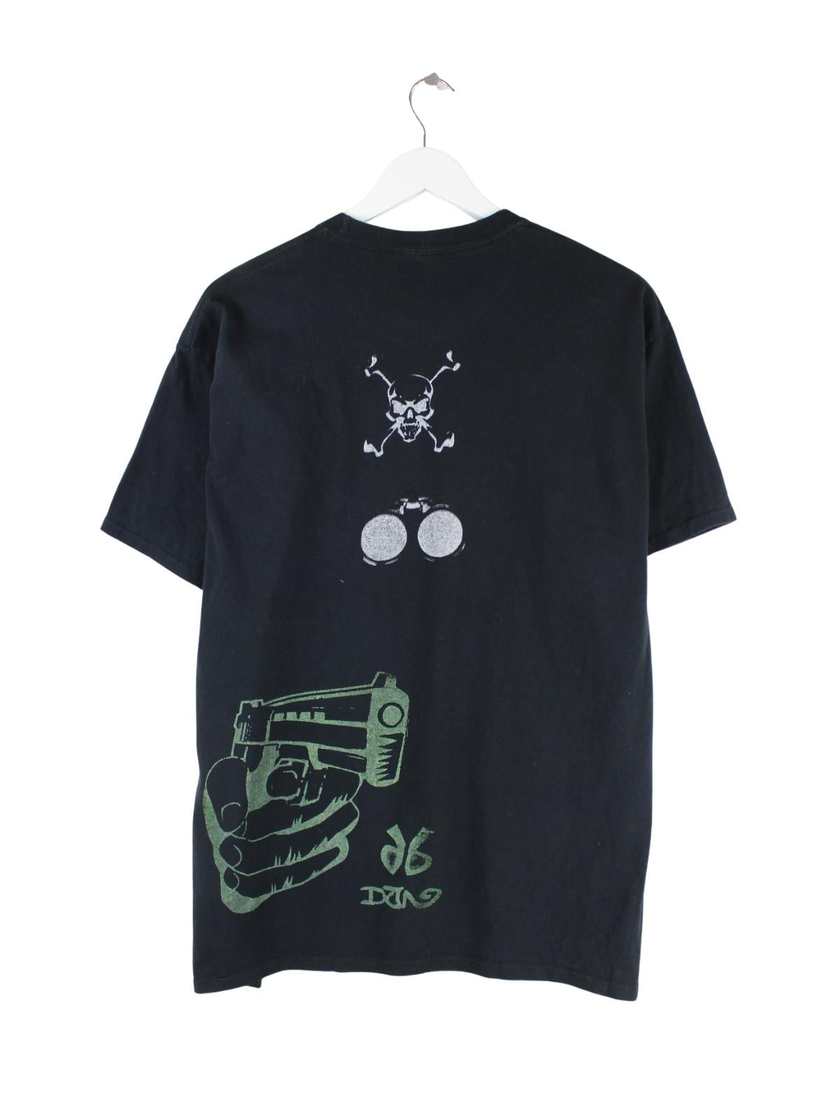 Vintage T-Shirt in Größe L. Es ist aus Baumwolle gefertigt und in Schwarz zu haben. Mit chiquem Print.