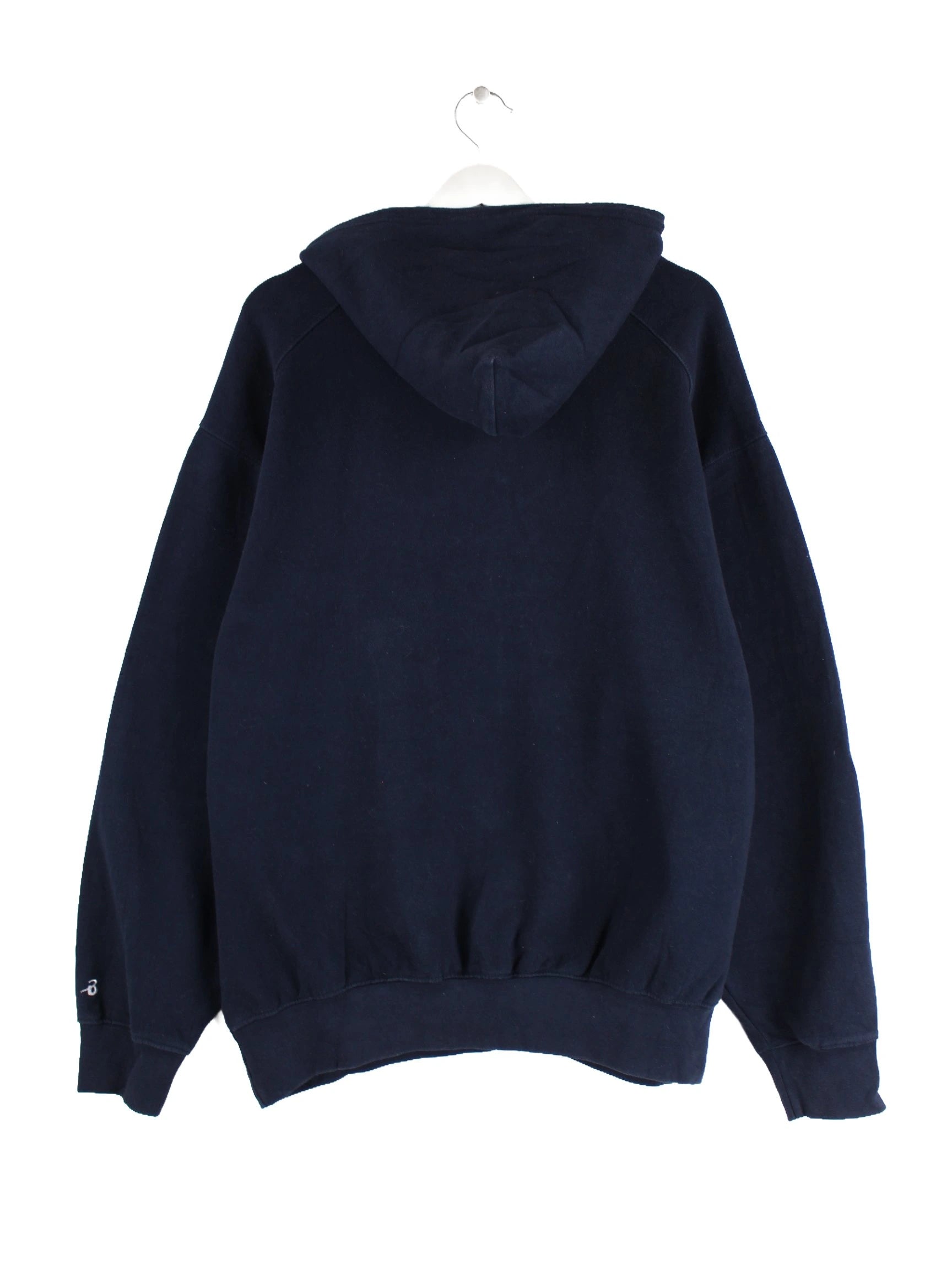 Blauer Vintage Hoodie in Größe XL. Er ist aus einer Baumwollmischung und in sehr gutem Zustand vorrätig. Mit chiquem Baseball Print.