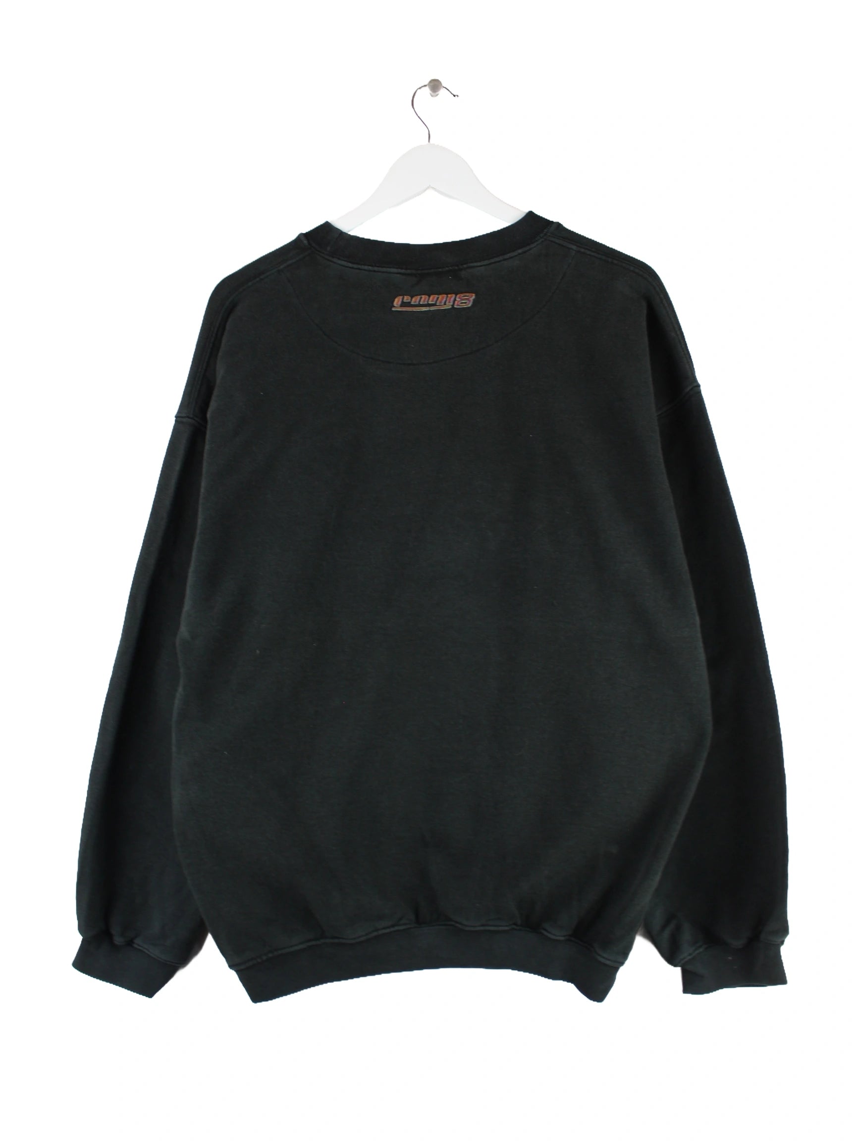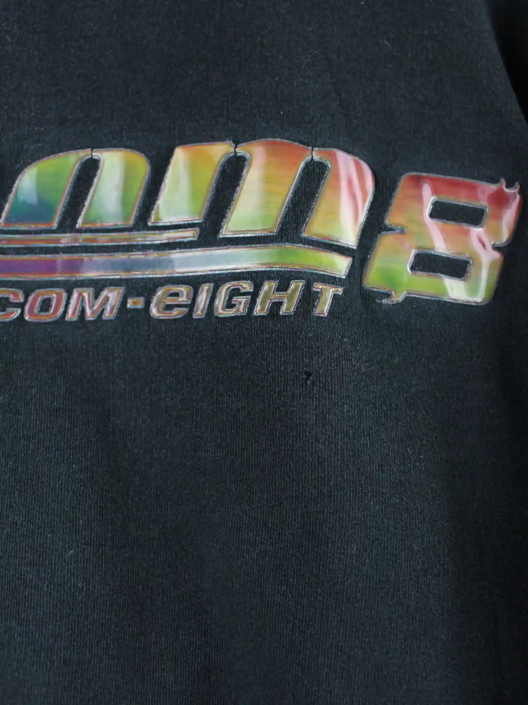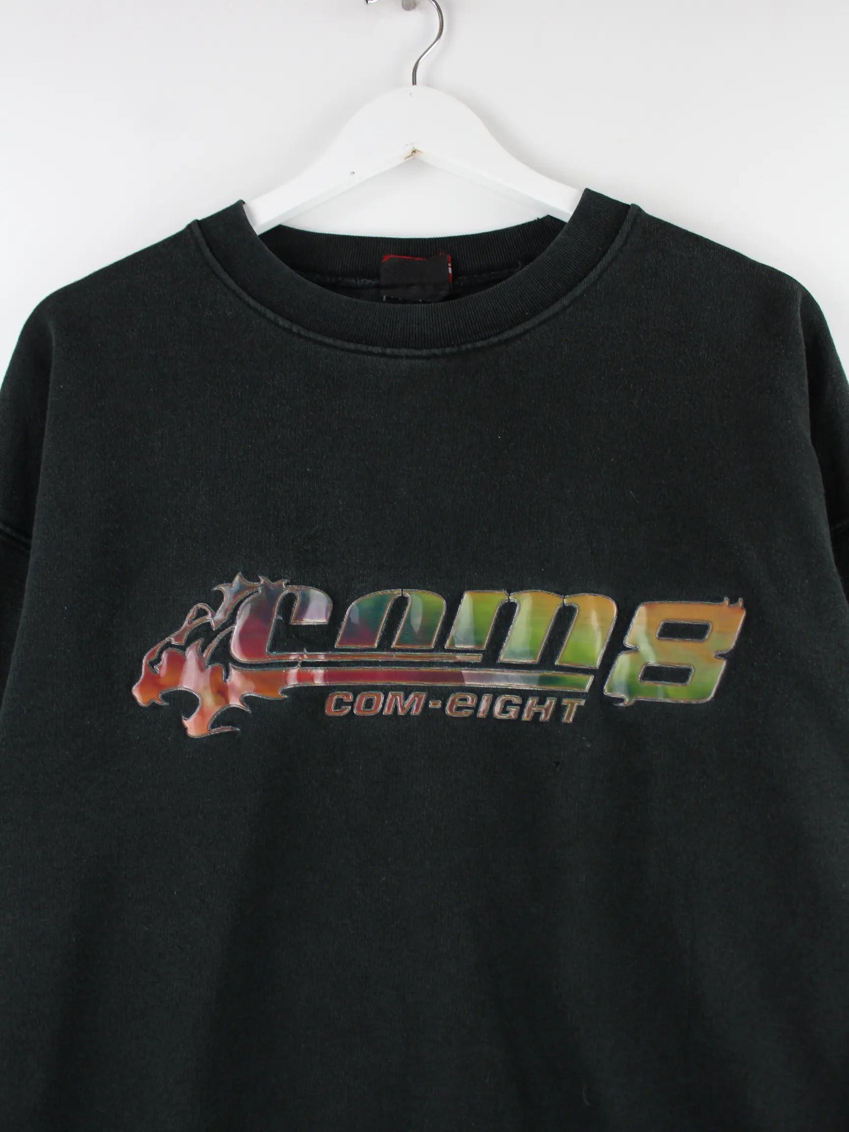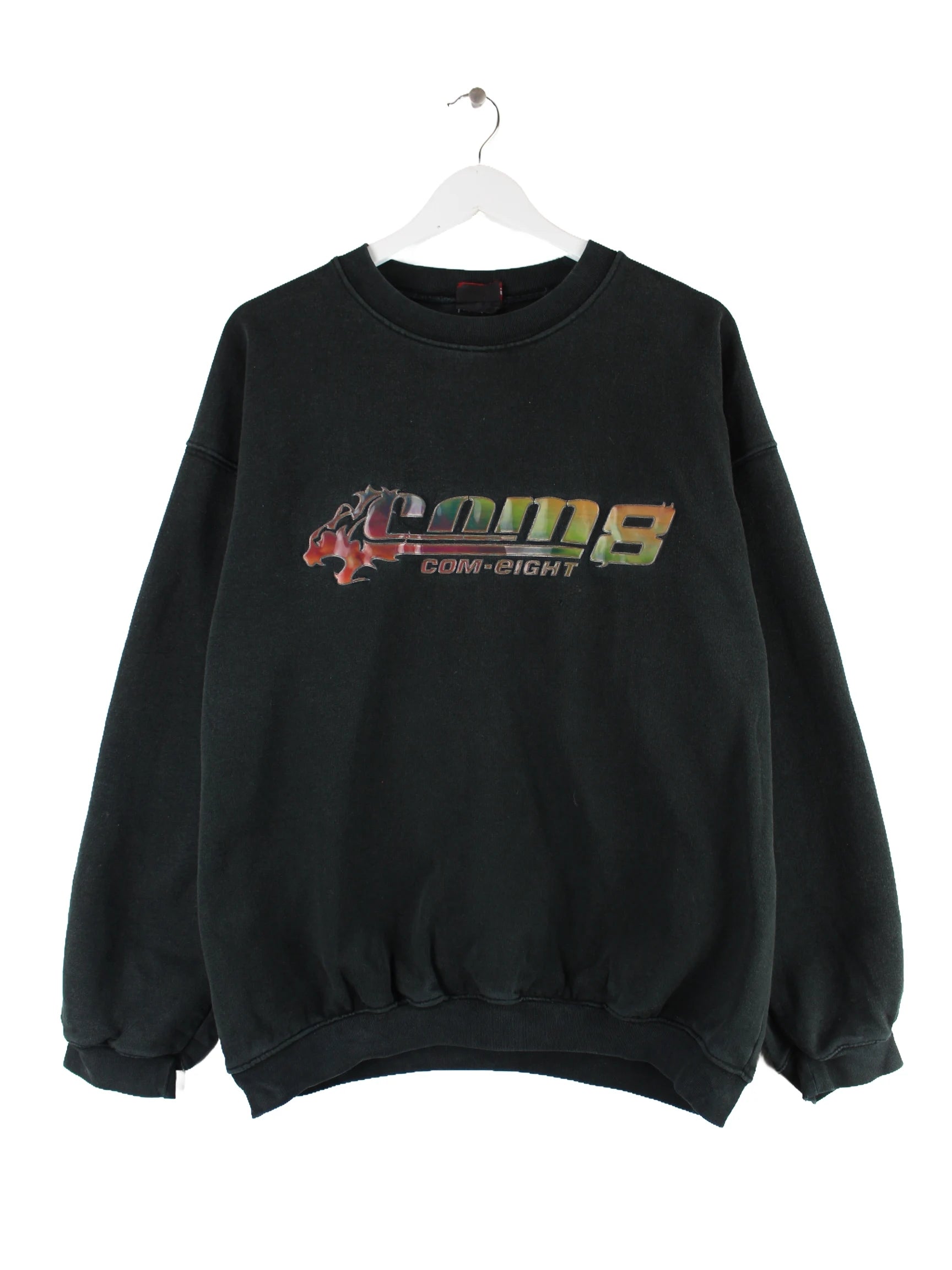 Schwarzer Vintage Sweater aus Anfang der 2000'er in Größe L. Er ist aus einer Baumwollmischung produziert und in gutem Zustand in Stock. Mit tollem Com8 Print.