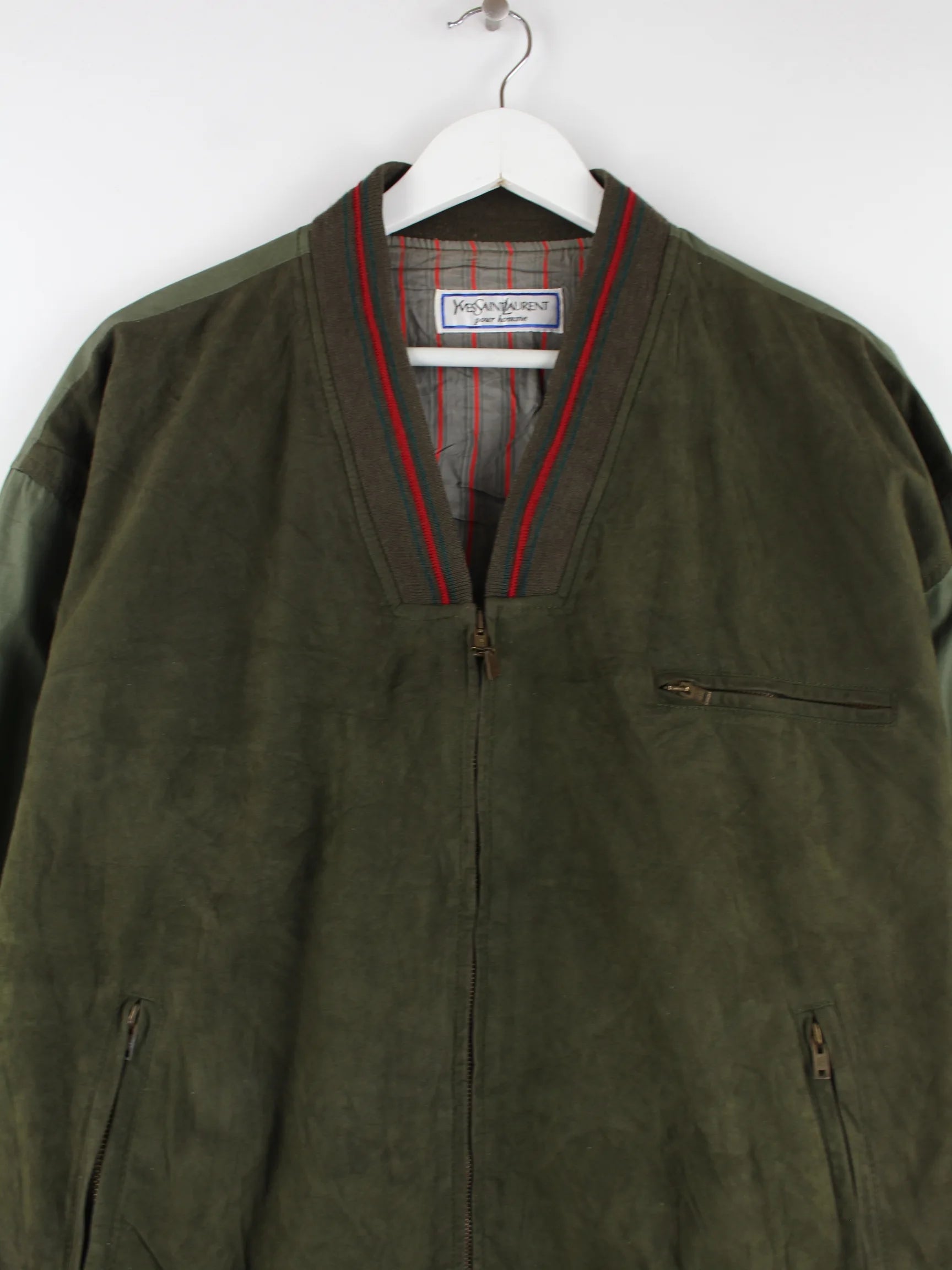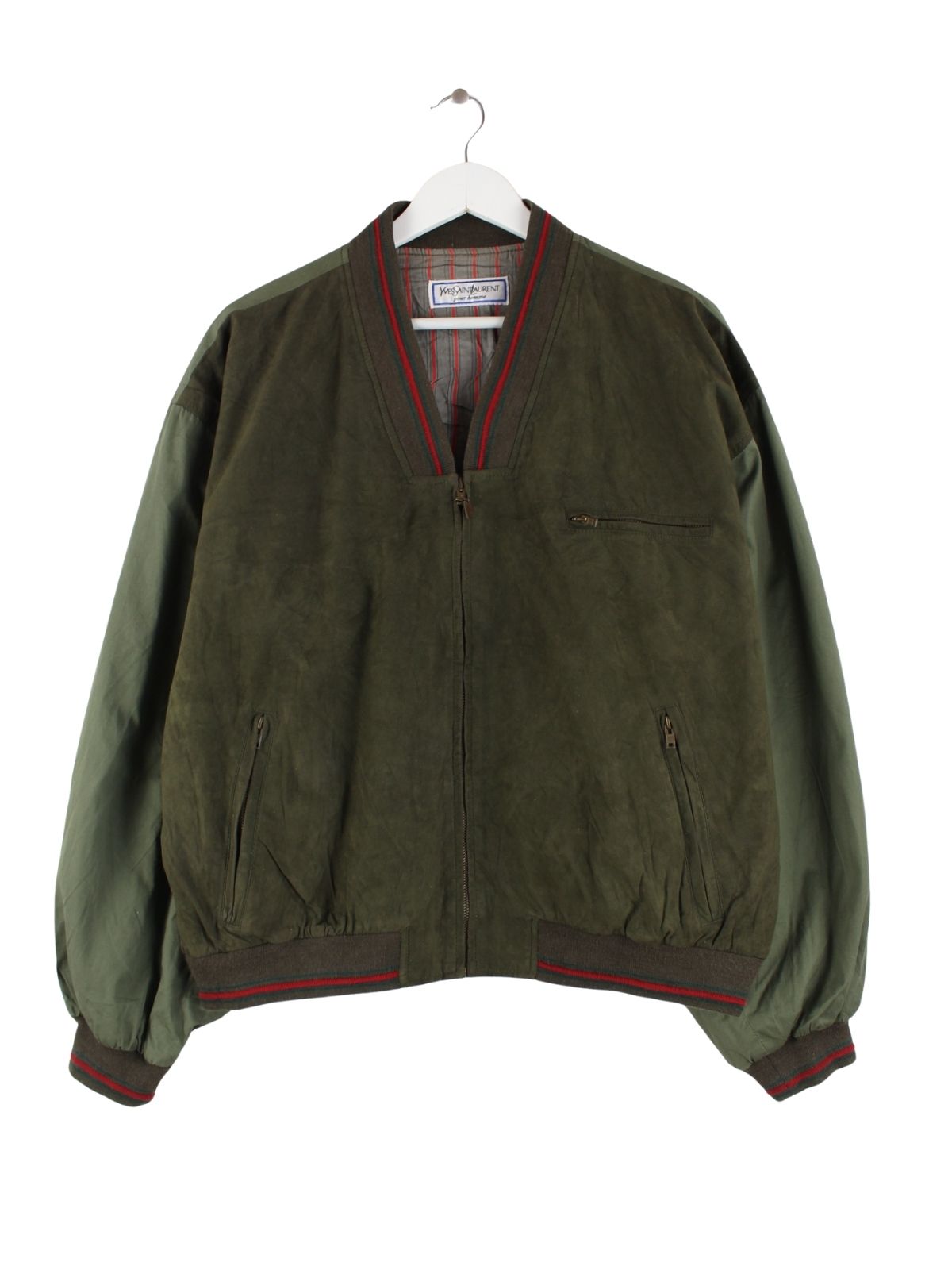 Yves Saint Laurent 90s Vintage Suede Bomber Jacke Grün M