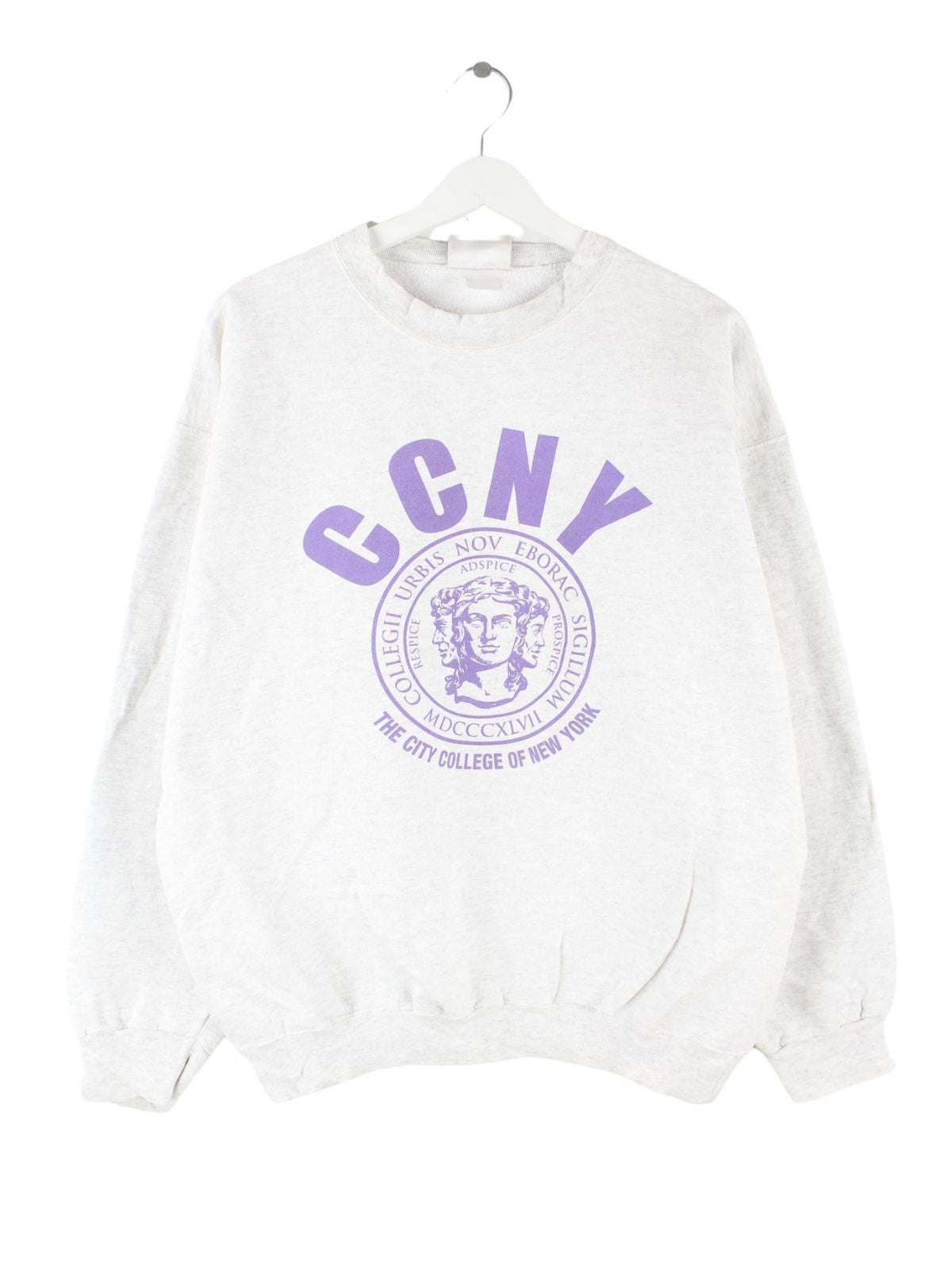 Hanes 90s Vintage New York College Print Heavy Sweater Grau L