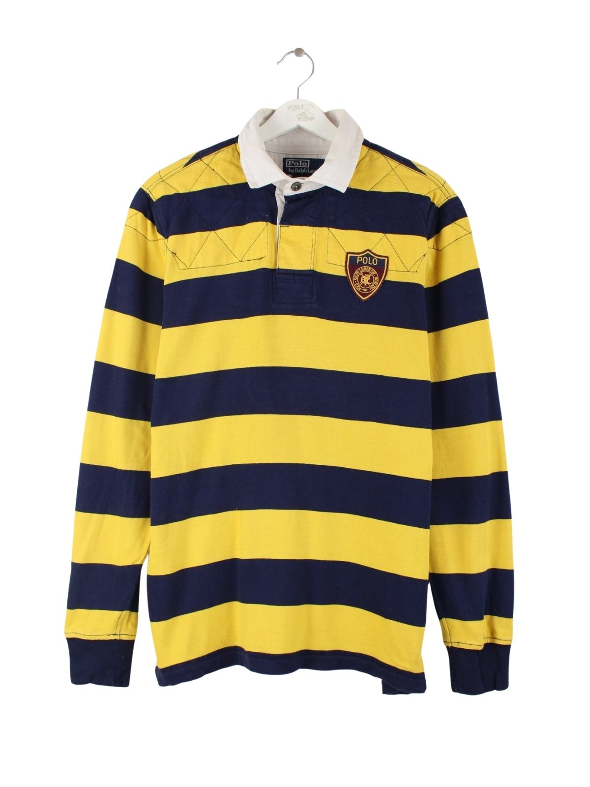 Ralph Lauren 00s Custom Fit Striped Rugby Langarm Polo Gelb / Blau M