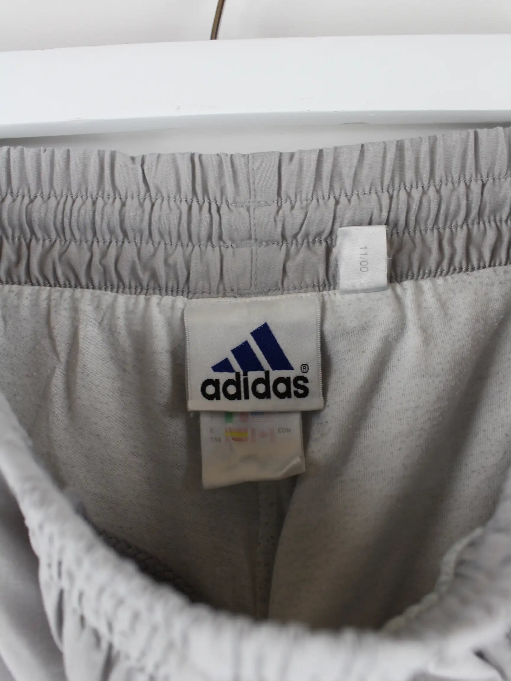 Track Pants von Adidas in Größe XXL aus den 90'ern. Sie sind aus Synthetik angefertigt und in Grau zu bekommen.