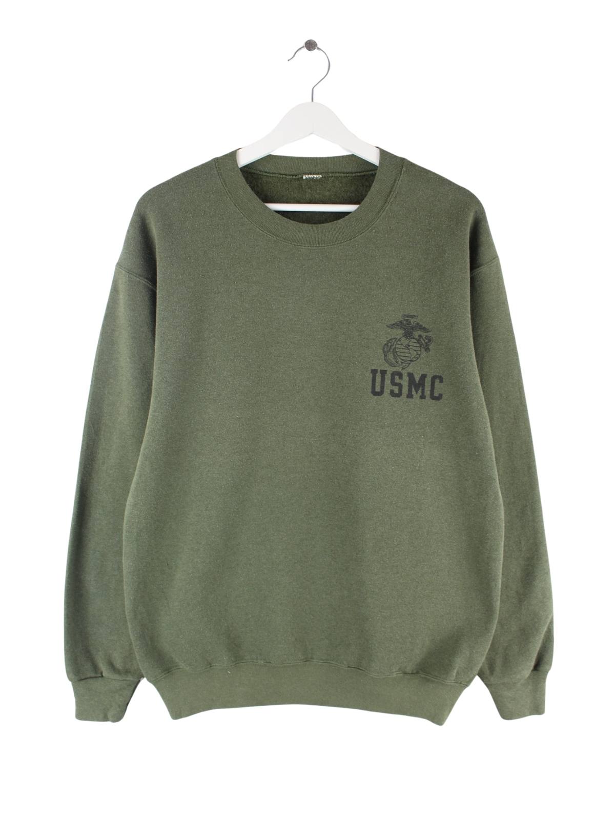 Vintage 90s US Marine Corps Print Sweater Grün M