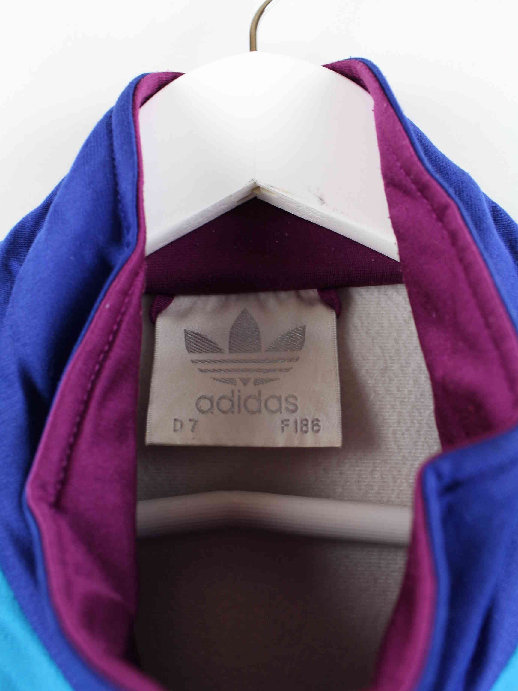 Adidas brand training jacket in size XL from the 80s. It is made of synthetic material and is available in bright colors.