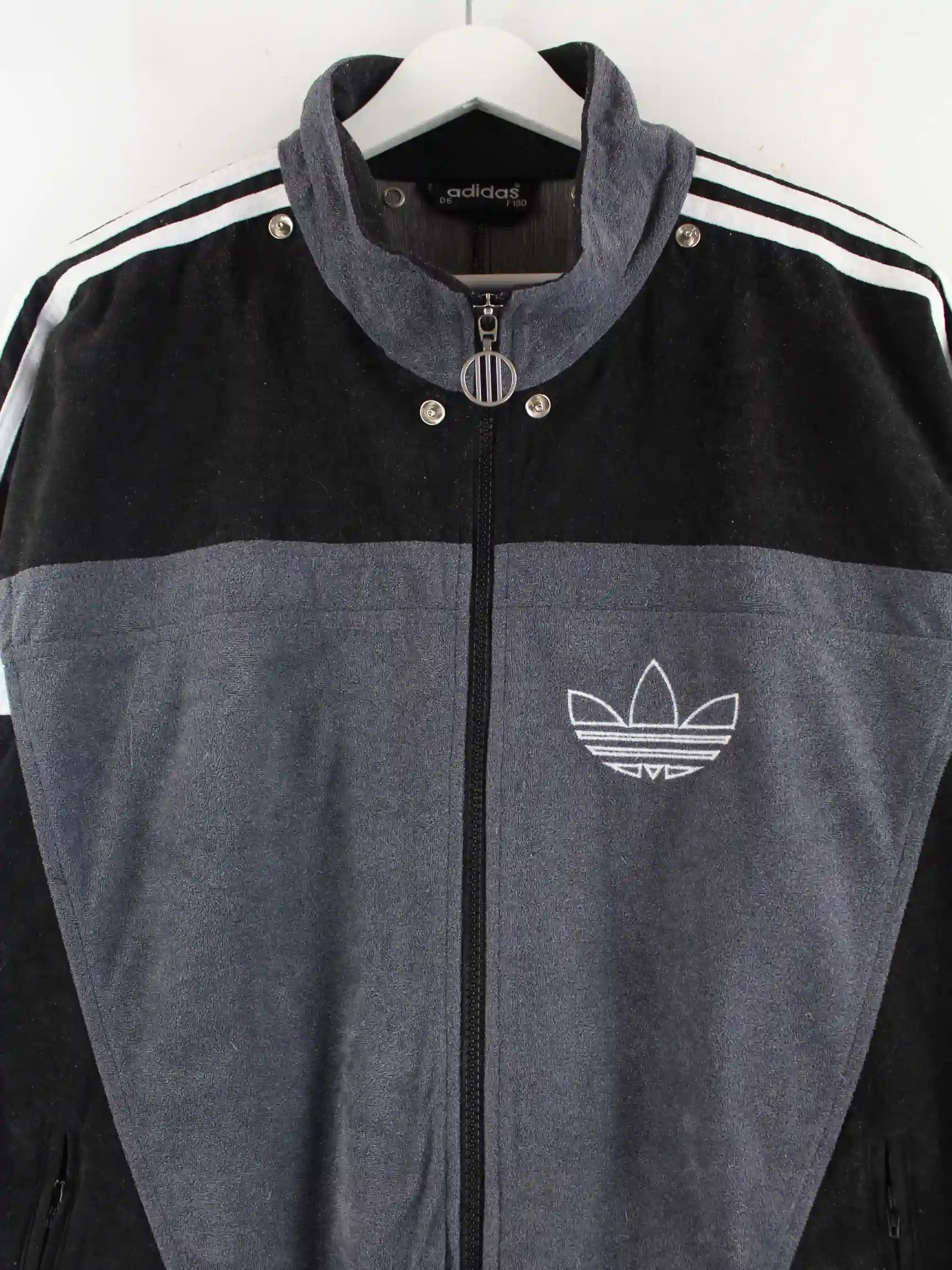 Adidas 90s Vintage Trefoil Embroidered Velour Trainingsjacke Grau L