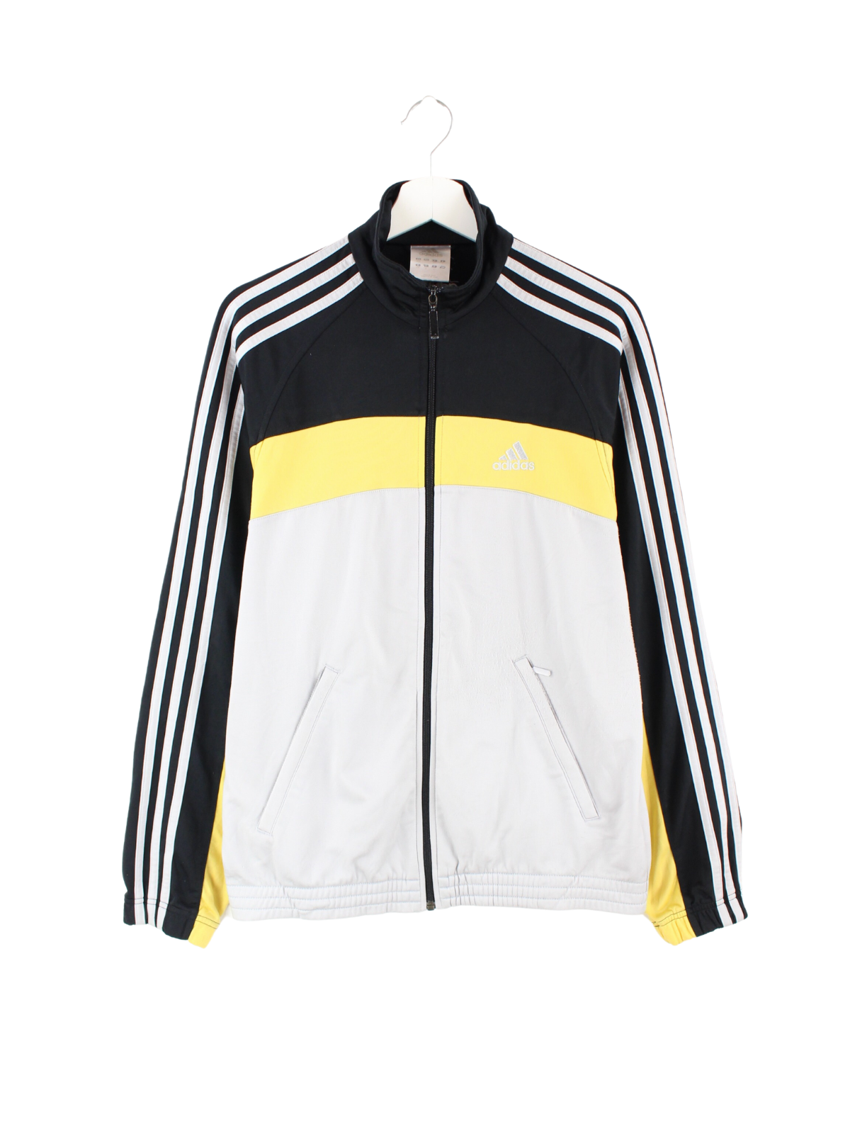 Adidas training jacket with white tape stripes.