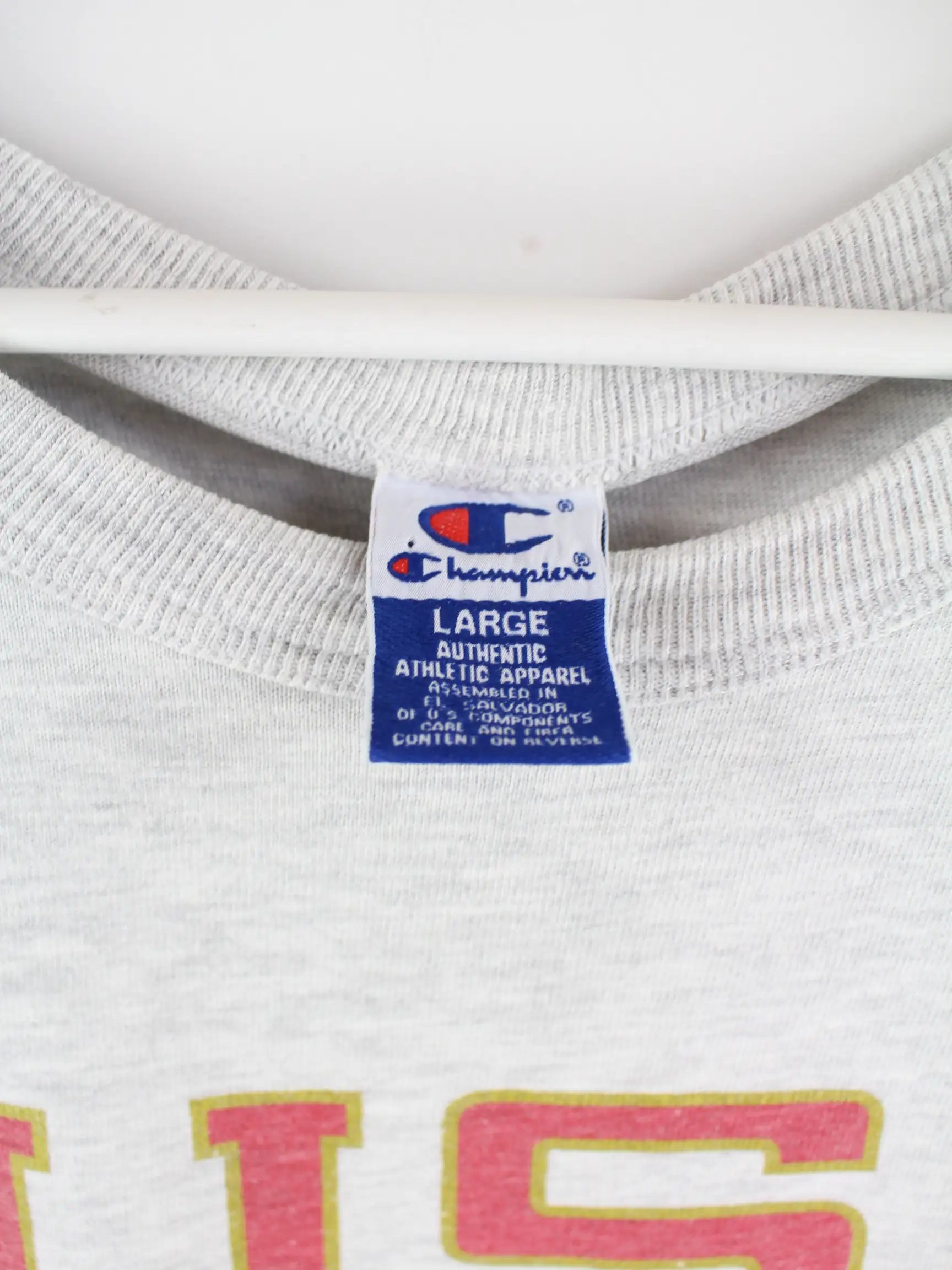 T-Shirt der Marke Champion in Größe L. Es ist aus Baumwolle hergestellt und in Grau im Angebot. Mit schönem Atlanta Print.