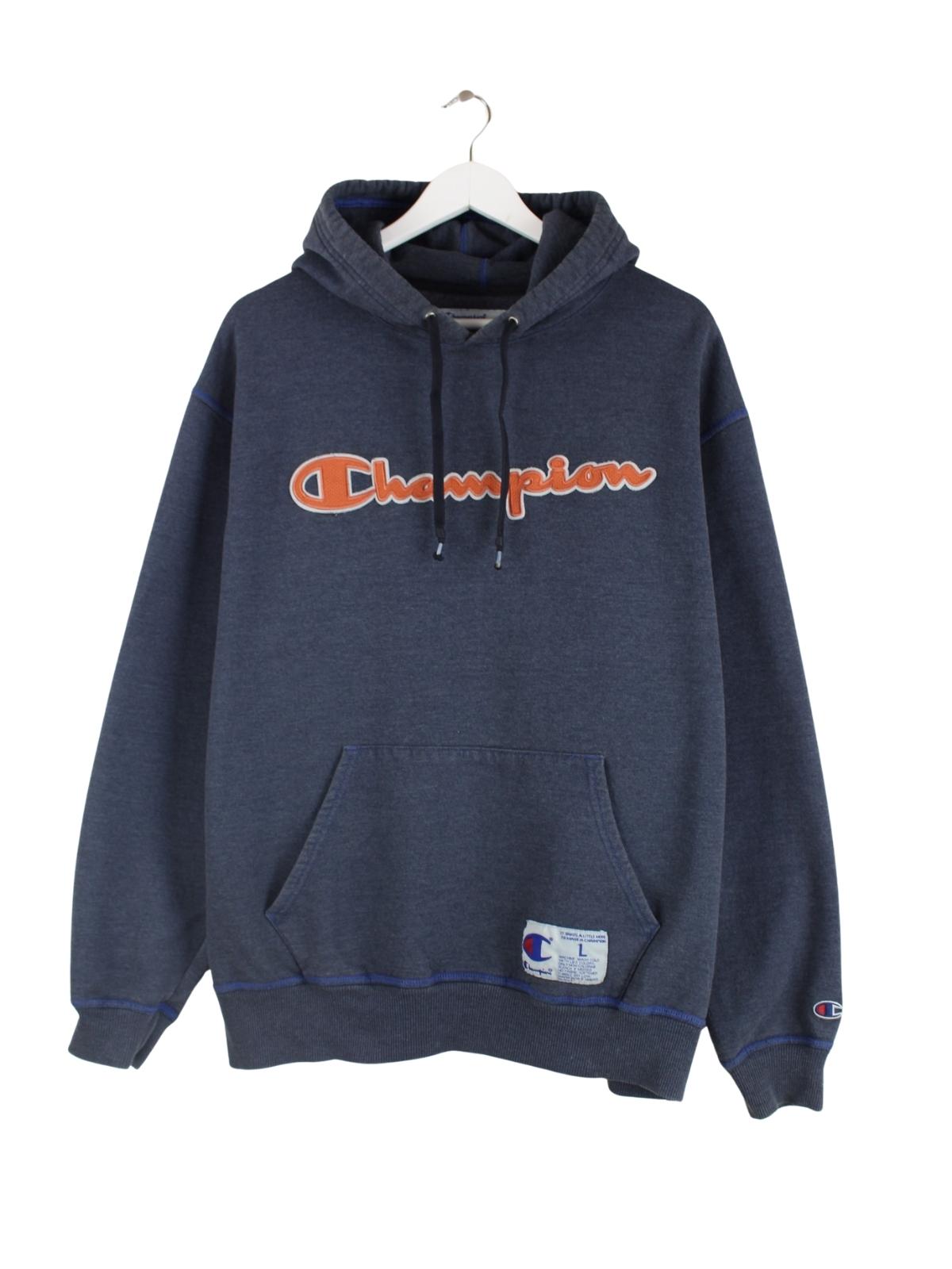 Grauer Hoodie des Labels Champion in Größe L. Er ist aus einer Baumwollmischung gefertigt und in sehr gutem Zustand bei uns zu bekommen.