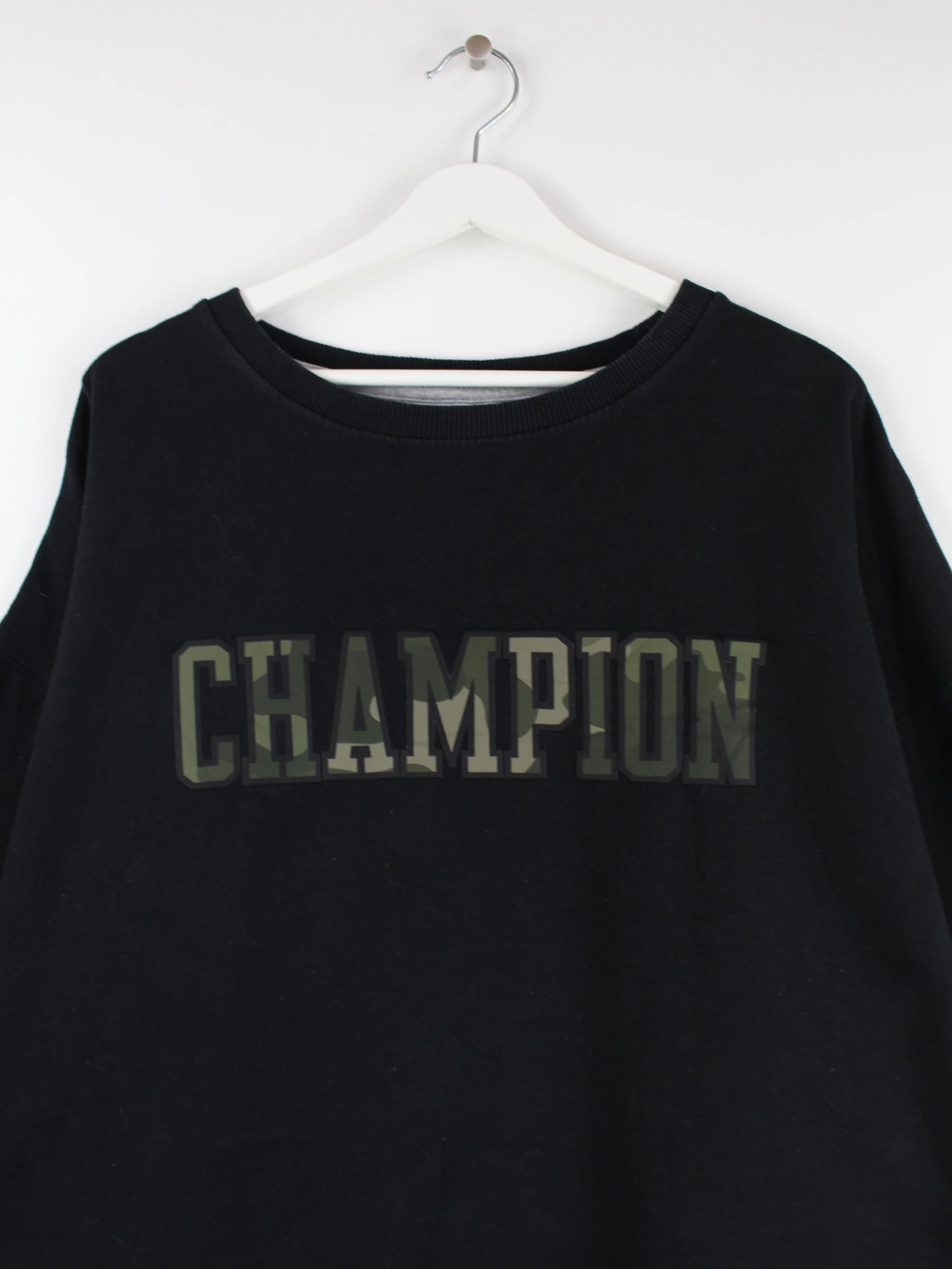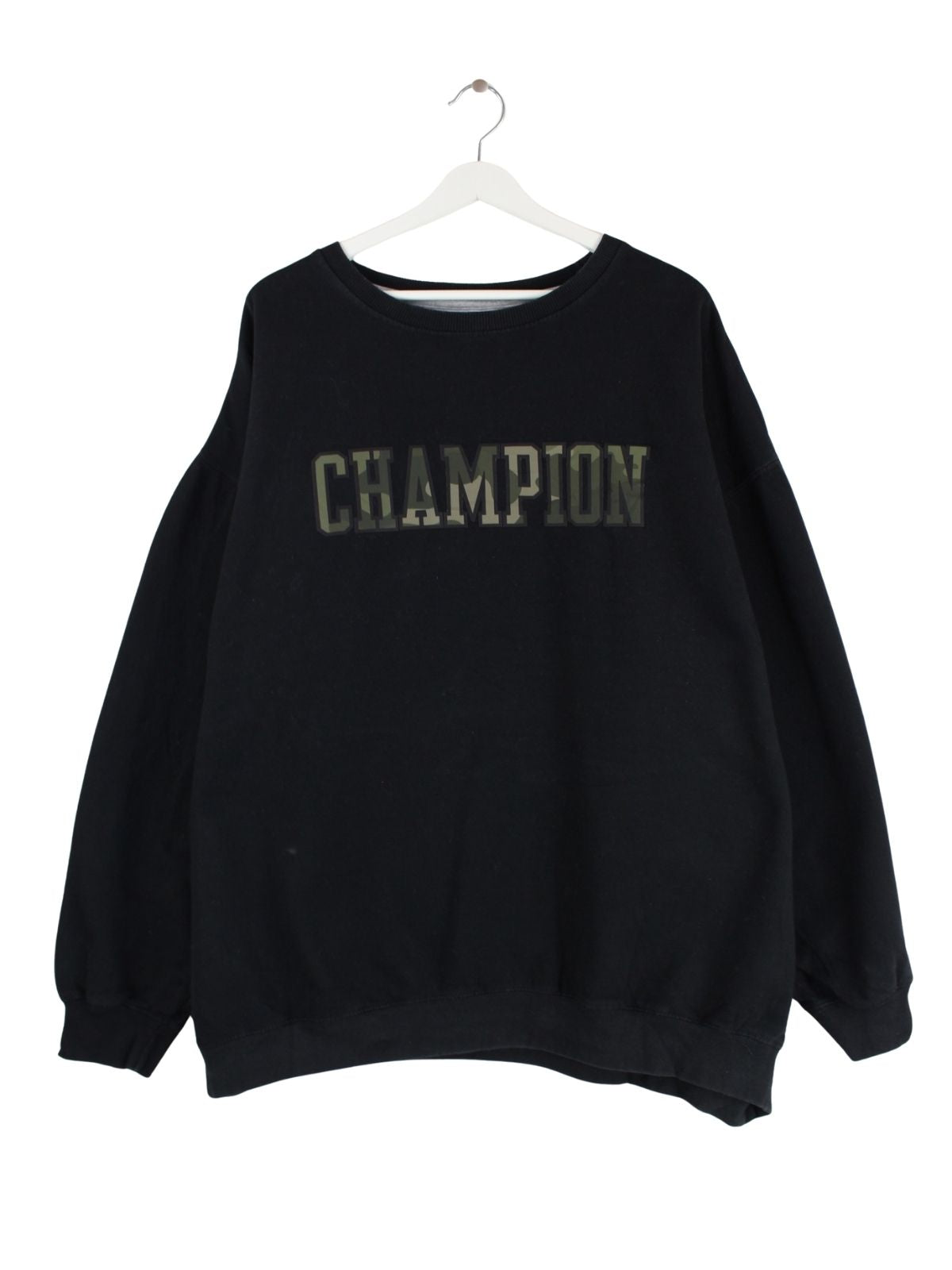 Sweater von Champion in Größe XXL. Er ist aus einer Baumwollmischung angefertigt und in Schwarz lieferbar. Mit schickem Print.