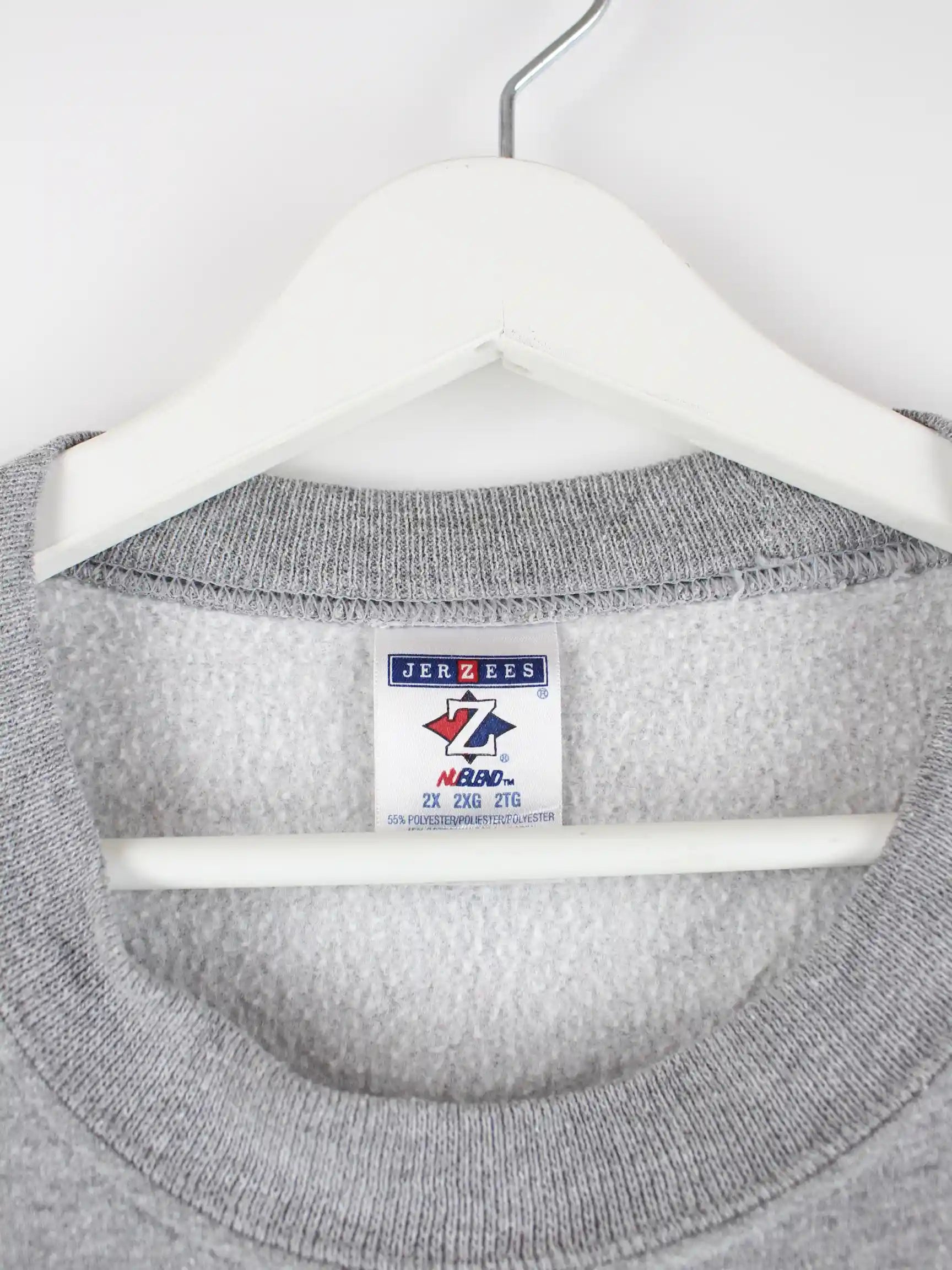 Sweater vom Label Jerzees in Größe XXL. Er ist aus einer Baumwollmischung gefertigt und in Grau auf Lager. Mit schickem Timers Print.