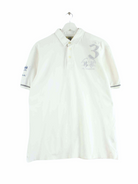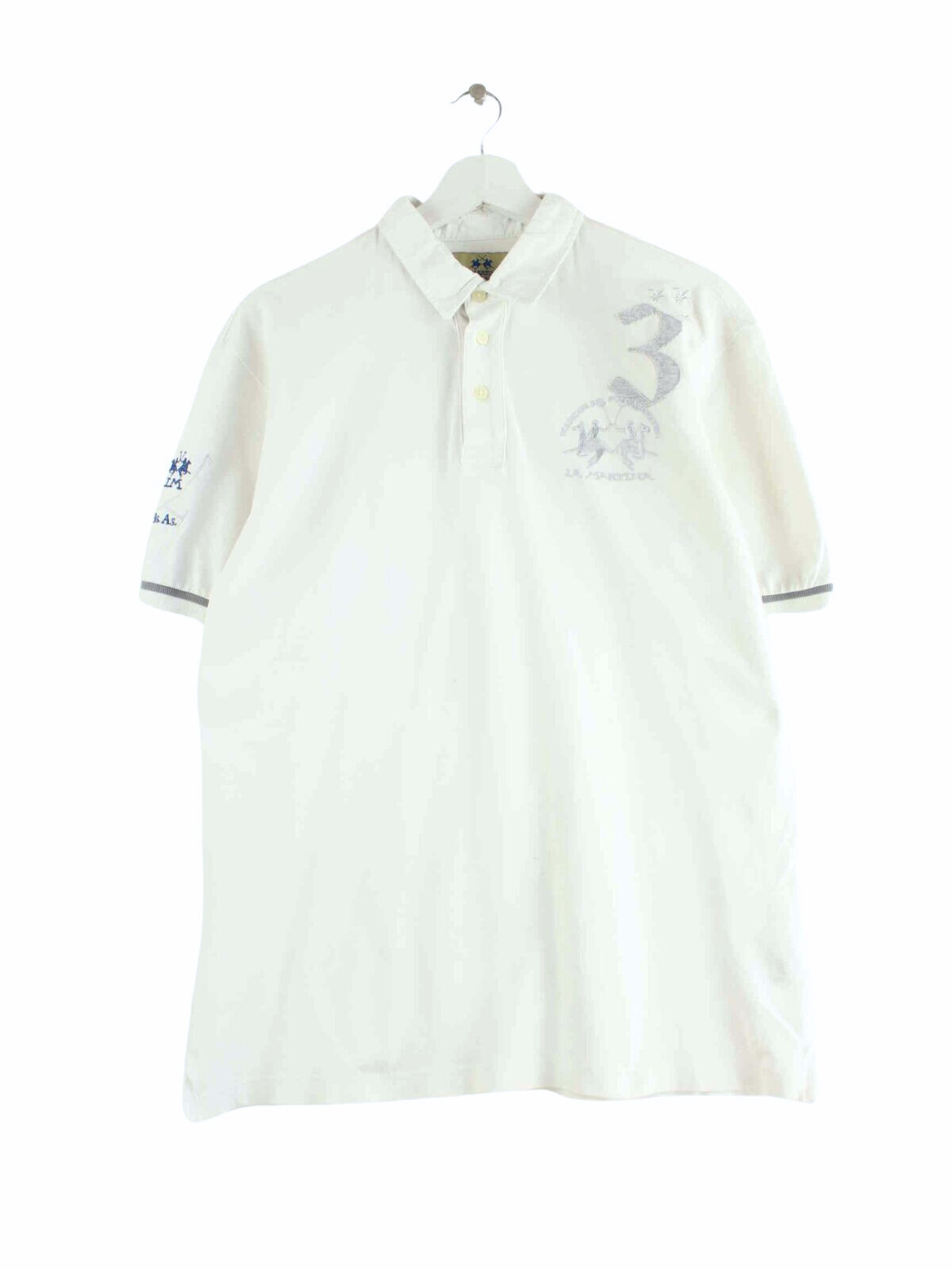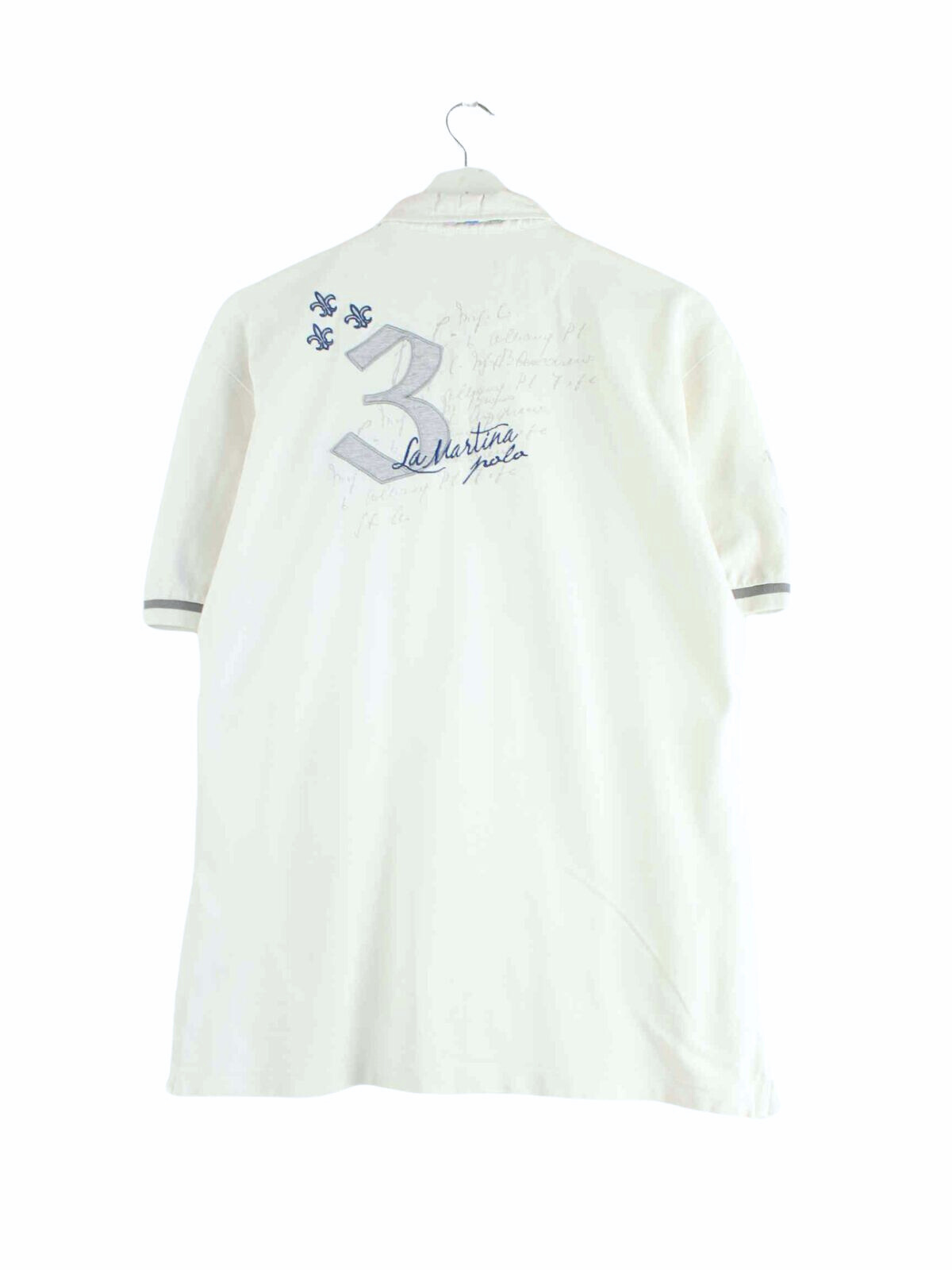 White polo shirt with embroidered motifs from the label La Martina in size L. It is made of cotton and is in good condition.